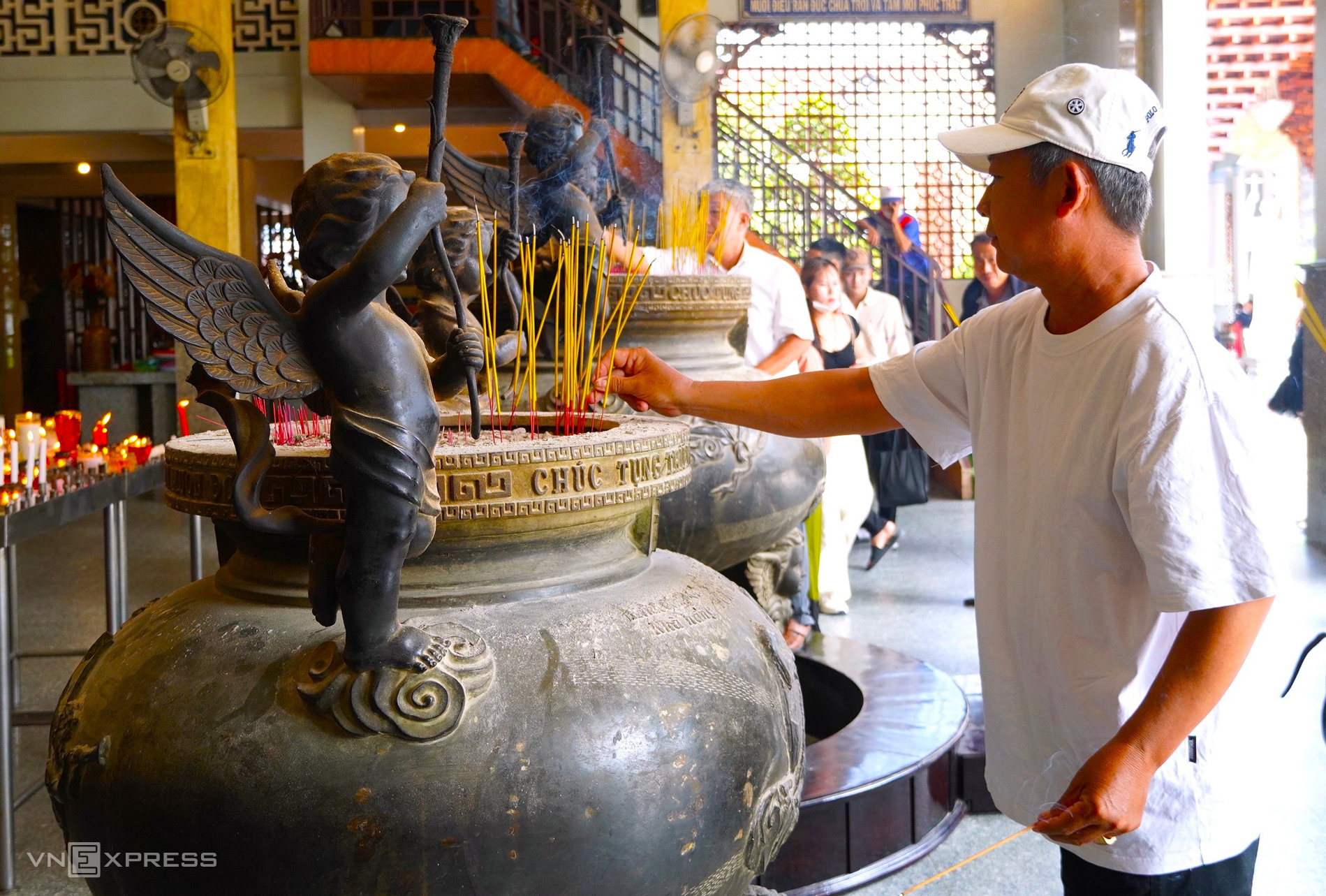 Mr. Mai Van Dung, from Phu Loi ward, Can Tho city, states that he and his family visit the priest annually. Despite the long journey, the family is eager to offer thanks and pray for good things. |