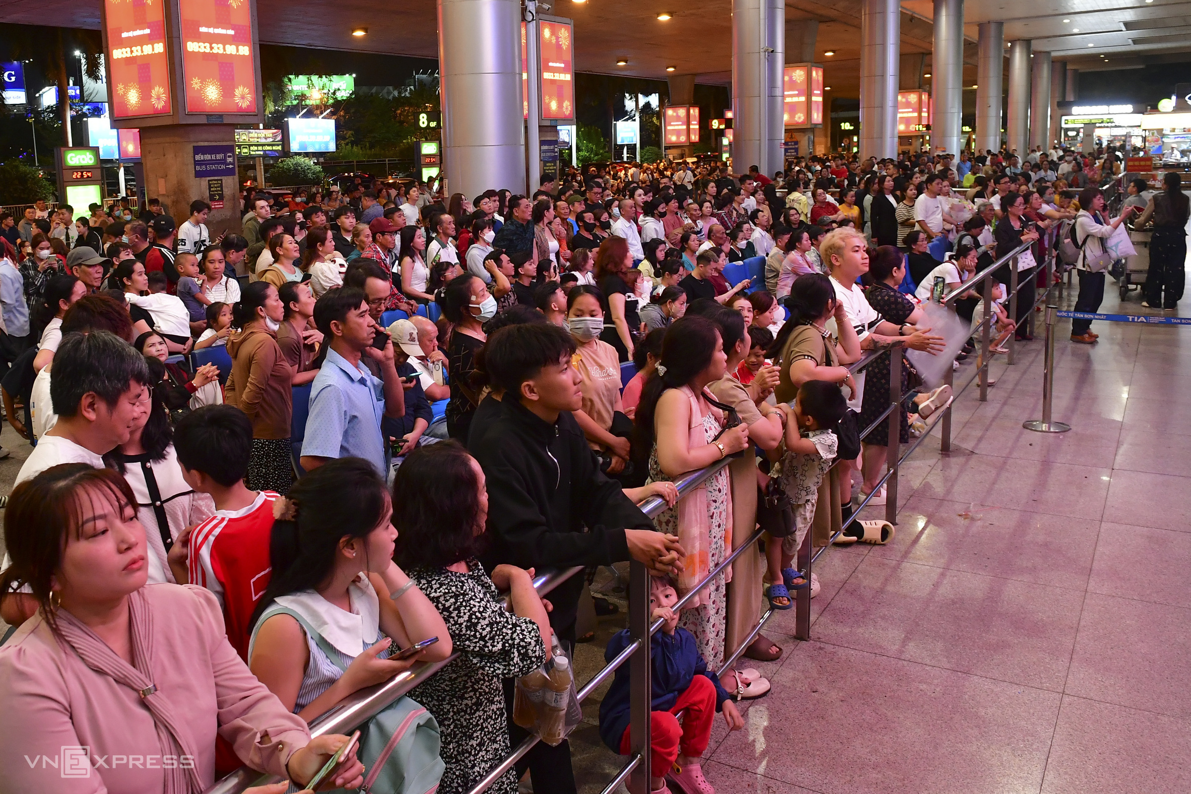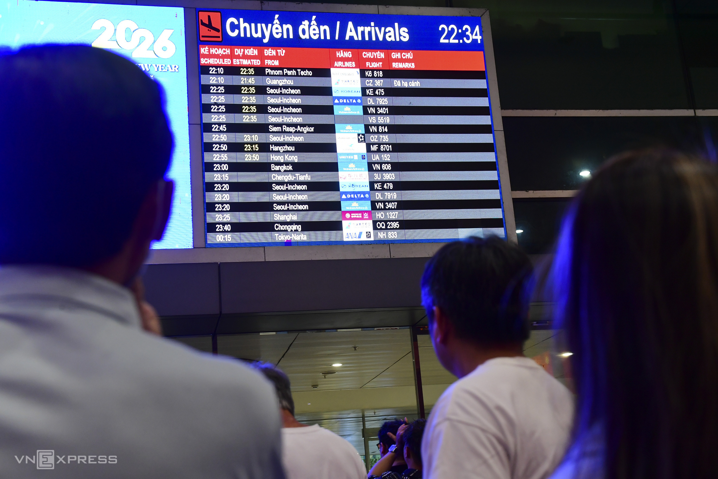 As night progressed, continuous flight arrivals led to an increasing number of greeters. Tong cong ty Quan ly bay Viet Nam reported over 1,050 domestic and international flights on 12/2, an unprecedented volume.