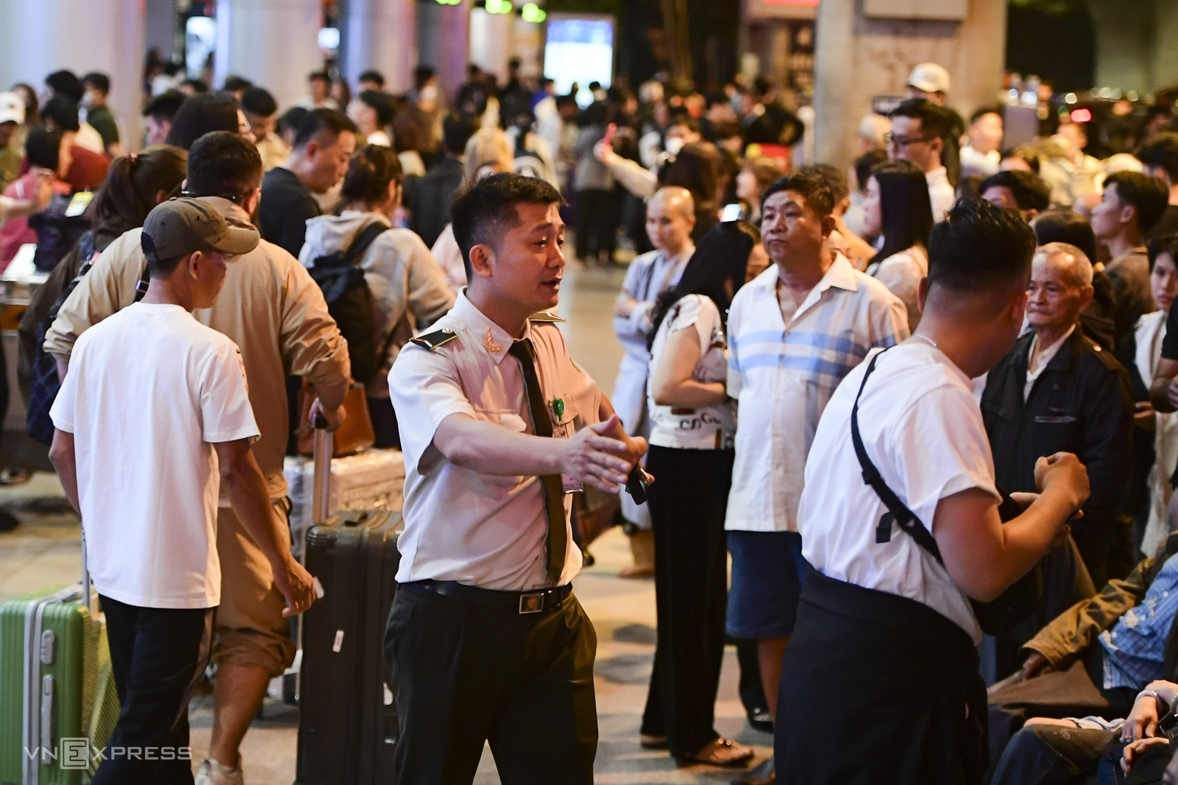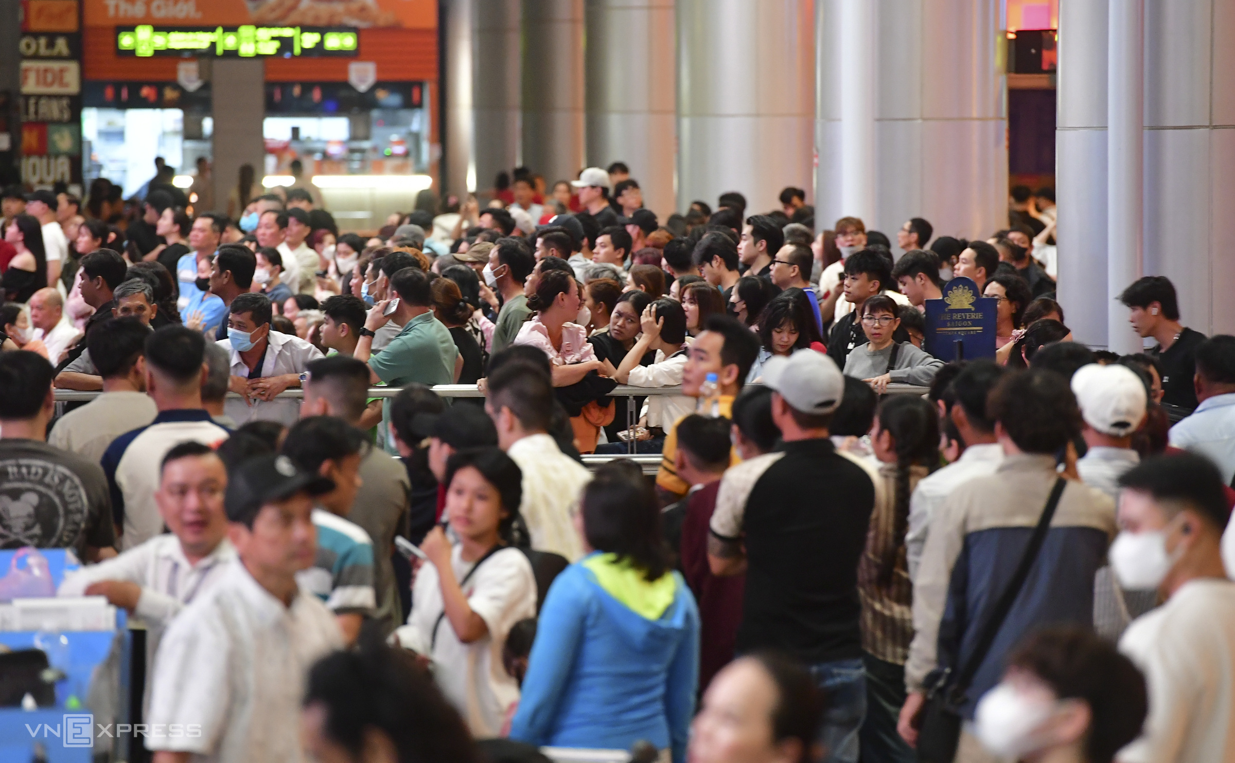 On the evening of 12/1, Tan Son Nhat International Terminal was bustling with people awaiting relatives returning for Tet. Security staff noted that the terminal is busy all day, peaking at night, in the two weeks leading up to Tet.