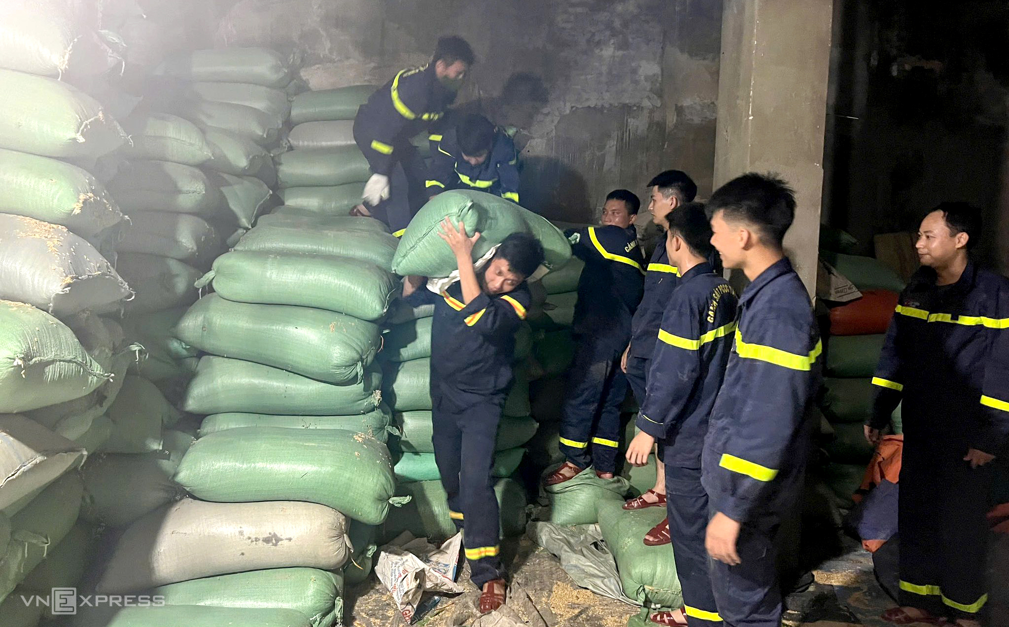 Last night, heavy flooding caused an 80-meter breach in the T2 canal dike in Tong Son commune, flooding over 200 hectares of rice paddies. This morning, the Thanh Hoa Provincial Police's search and rescue forces were mobilized to help relocate over 100 tons of rice from a granary near the breach. |