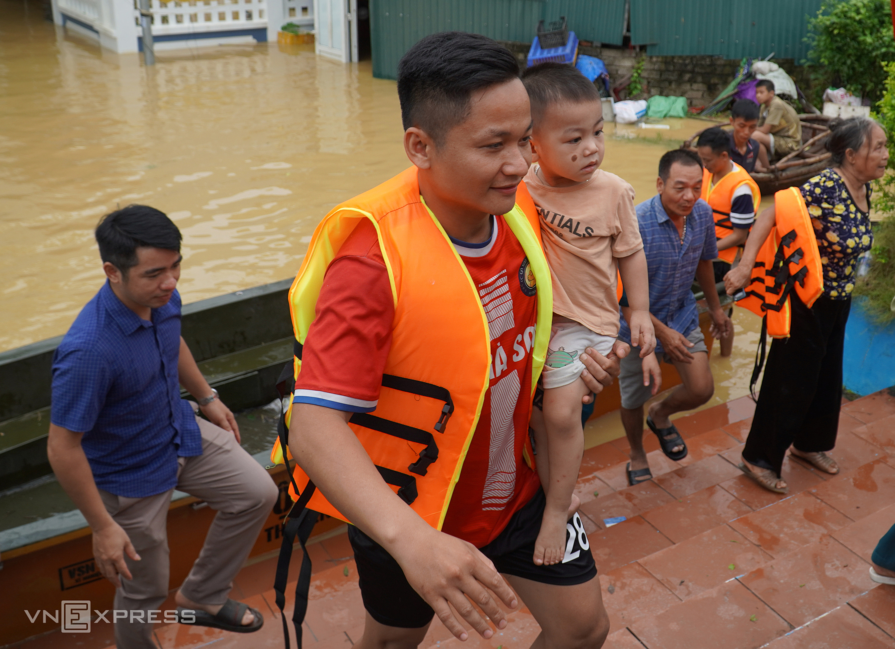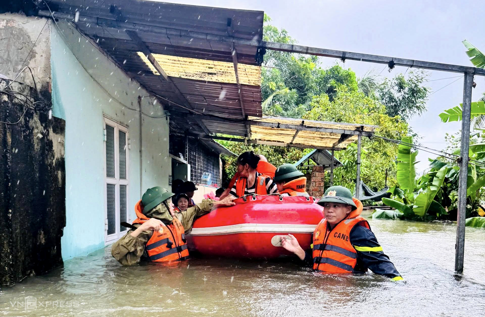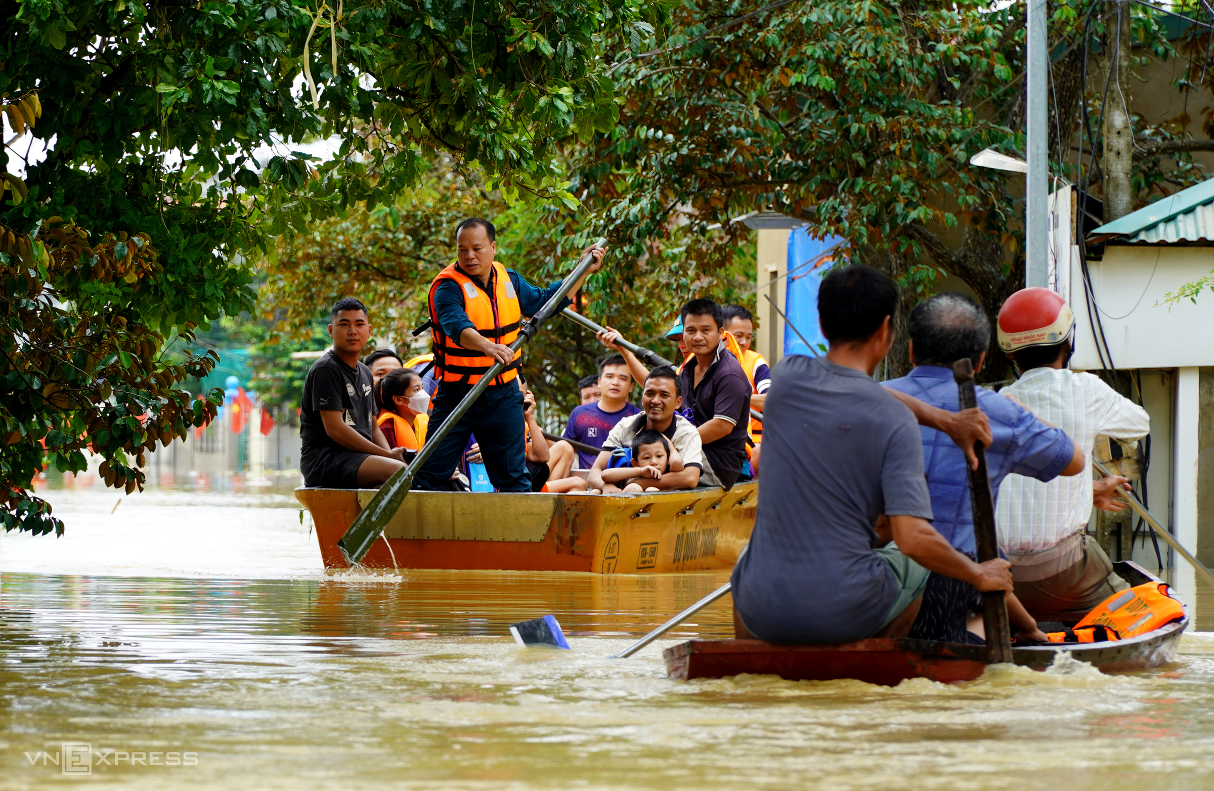 Near noon the same day, police and militia were mobilized to use specialized boats to evacuate residents from the flooded area in Ham Rong ward to safety. |