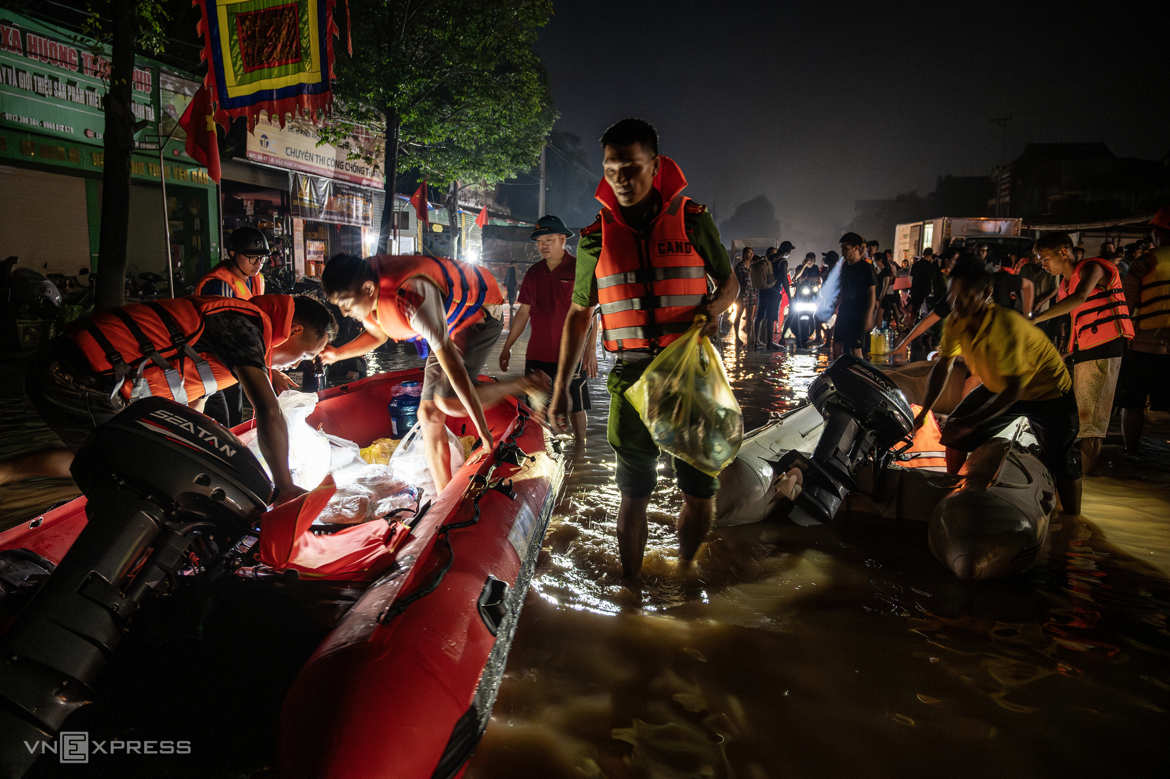 From night until morning, at dry locations in central Thai Nguyen, relief teams continued to await boats to transport and supply residents in flooded areas.