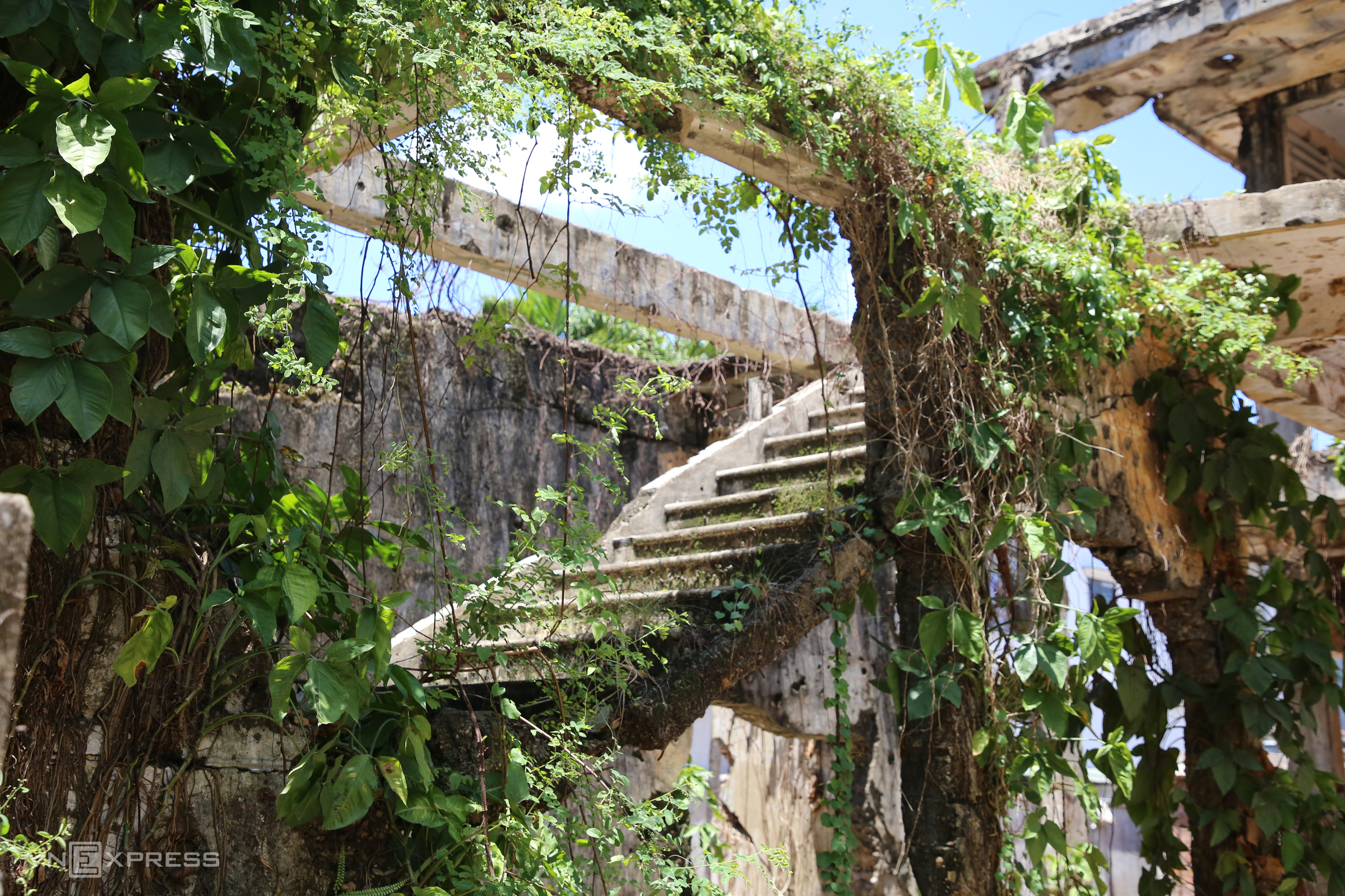 The staircase is mostly gone, leaving only a fragment overgrown with vegetation. During the 81-day battle, Bo De School served as a base for the Viet Cong.