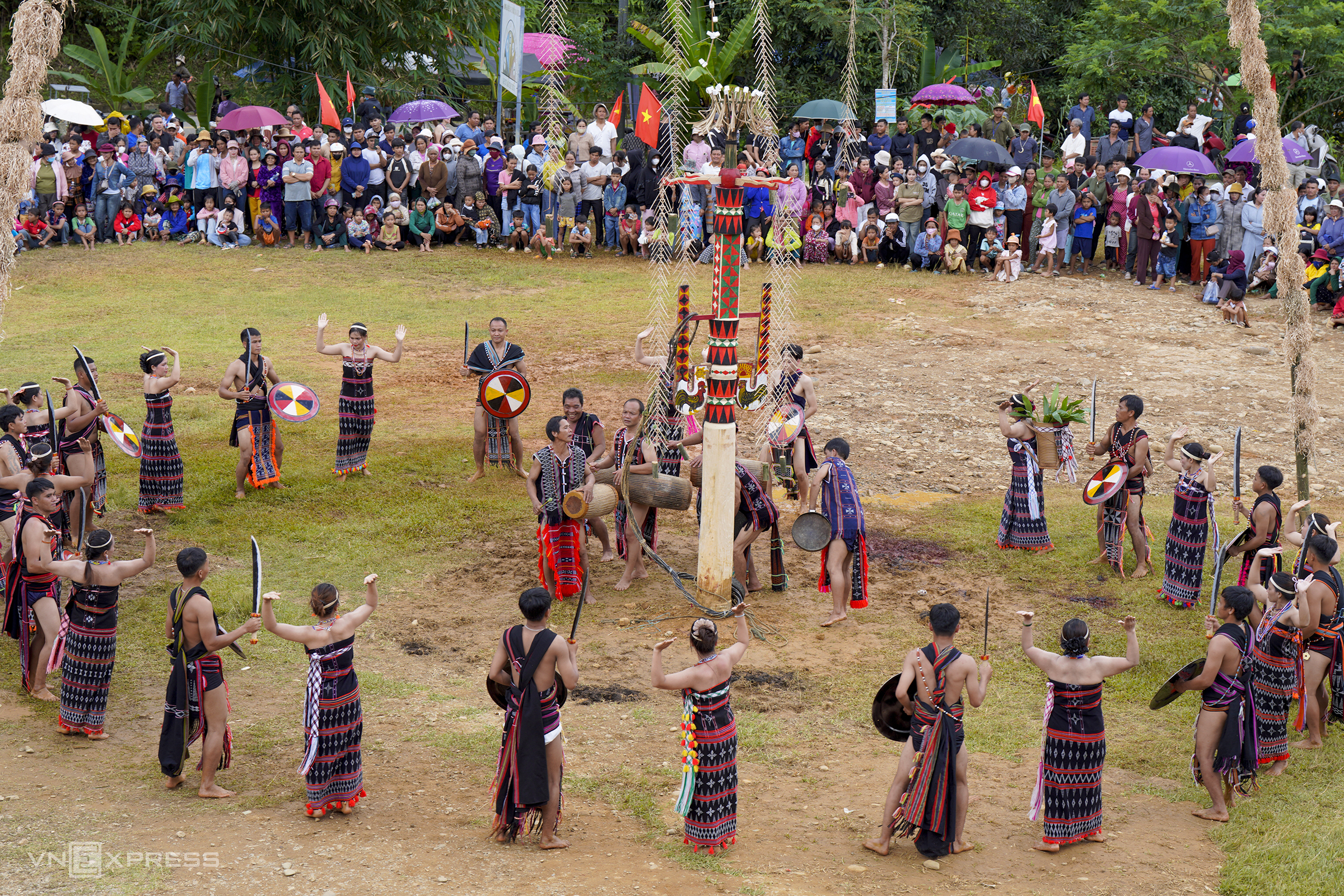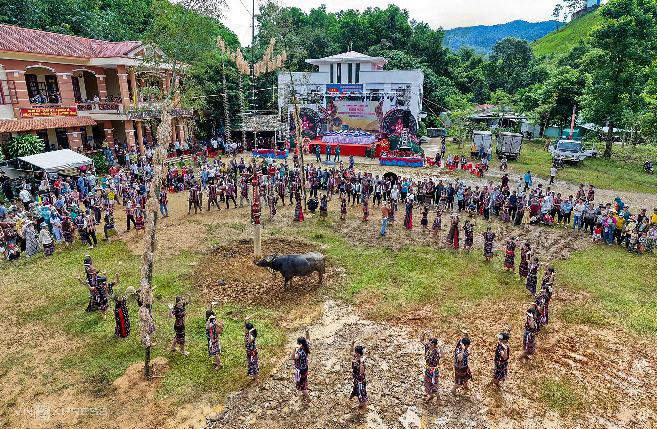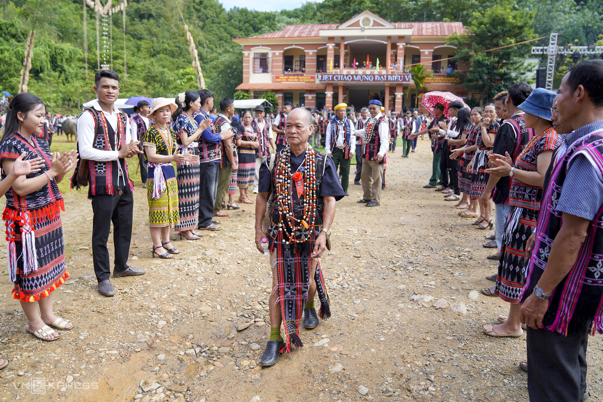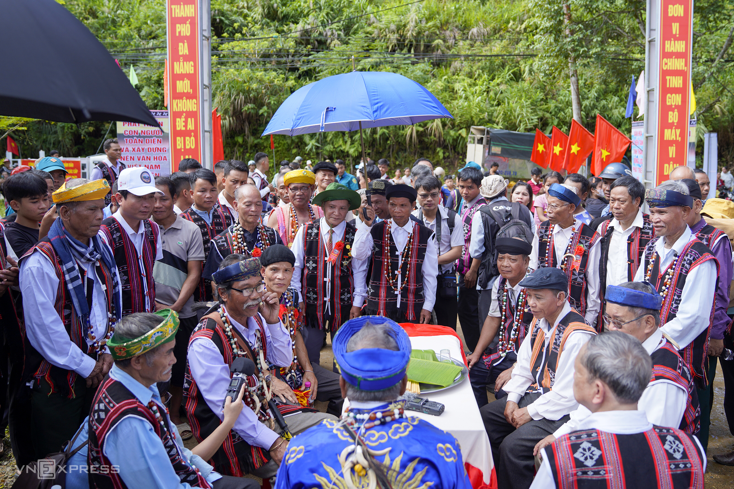 Three villages, A Ting, Jo Ngay, and Song Kon (formerly in Dong Giang district, Quang Nam), were merged into the new Song Kon village. During the traditional Co Tu Cultural Festival in late September, village elders decided to perform a brotherhood ceremony to strengthen unity across the Truong Son mountain range.
