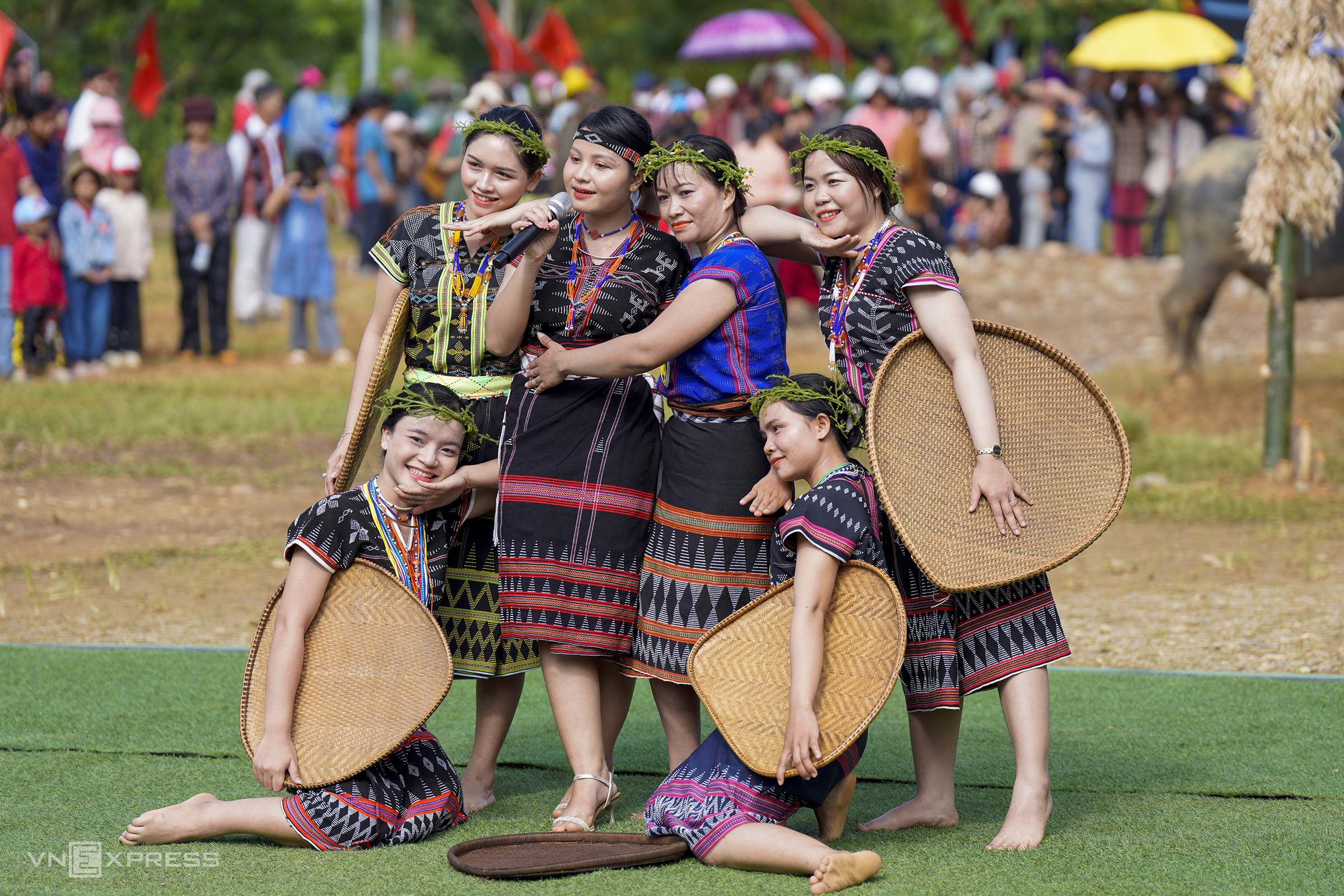The Co Tu people then formed a circle around the buffalo and performed the traditional tang tung da da dance. This dance expresses gratitude to the spirits, praying for bountiful harvests, village unity, and prosperity.