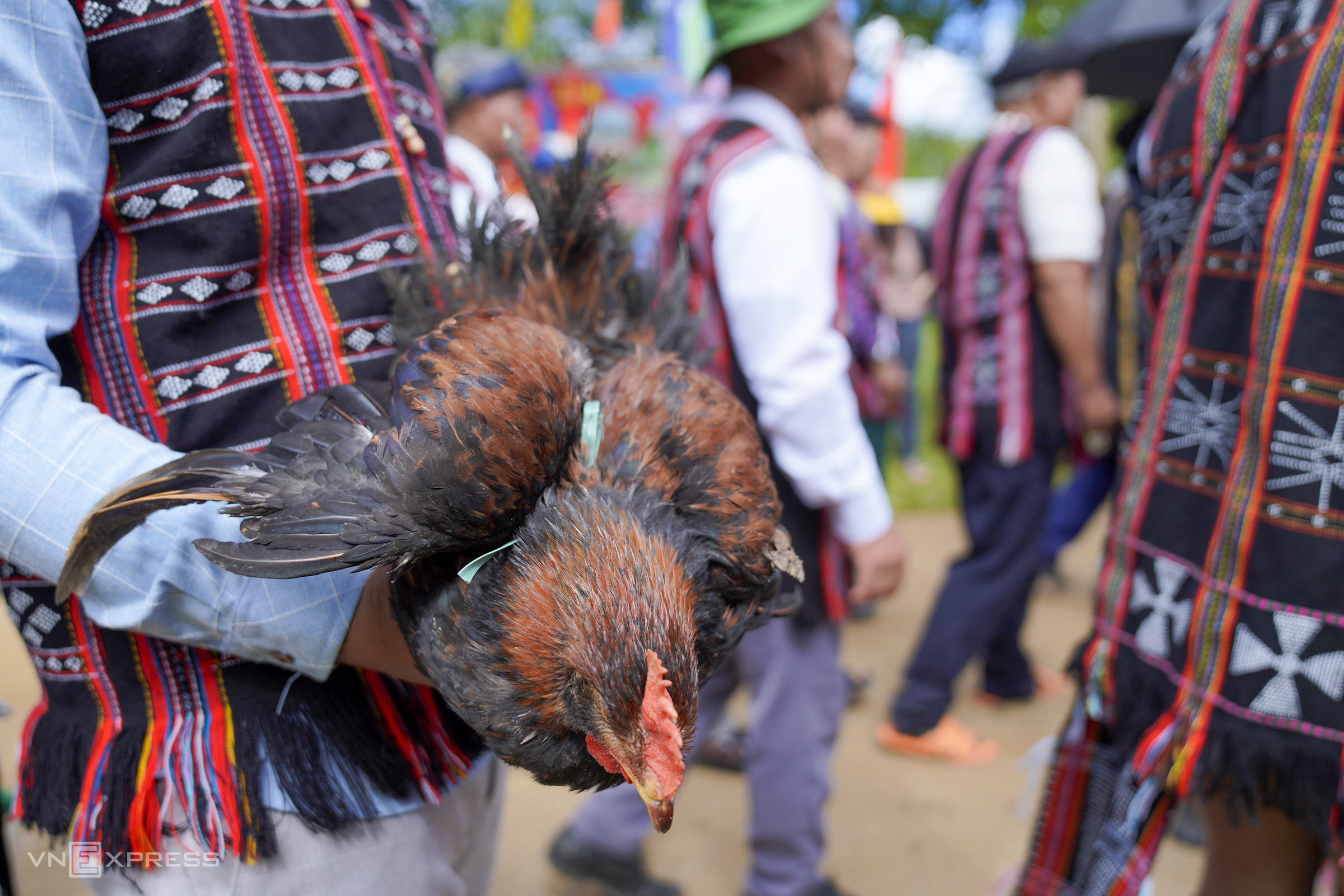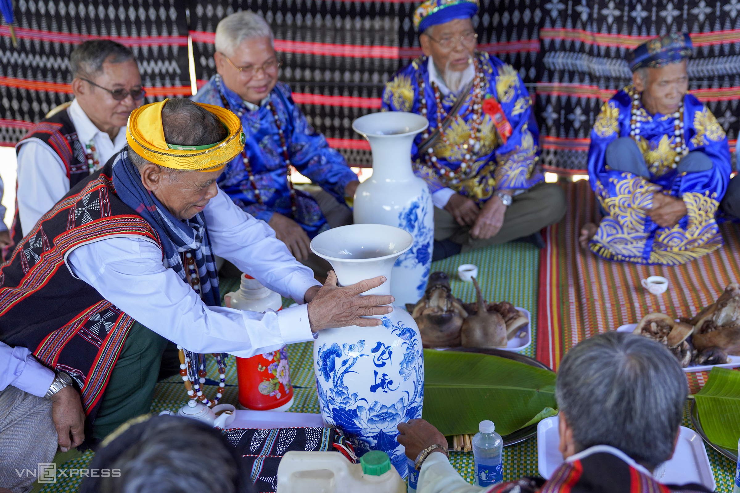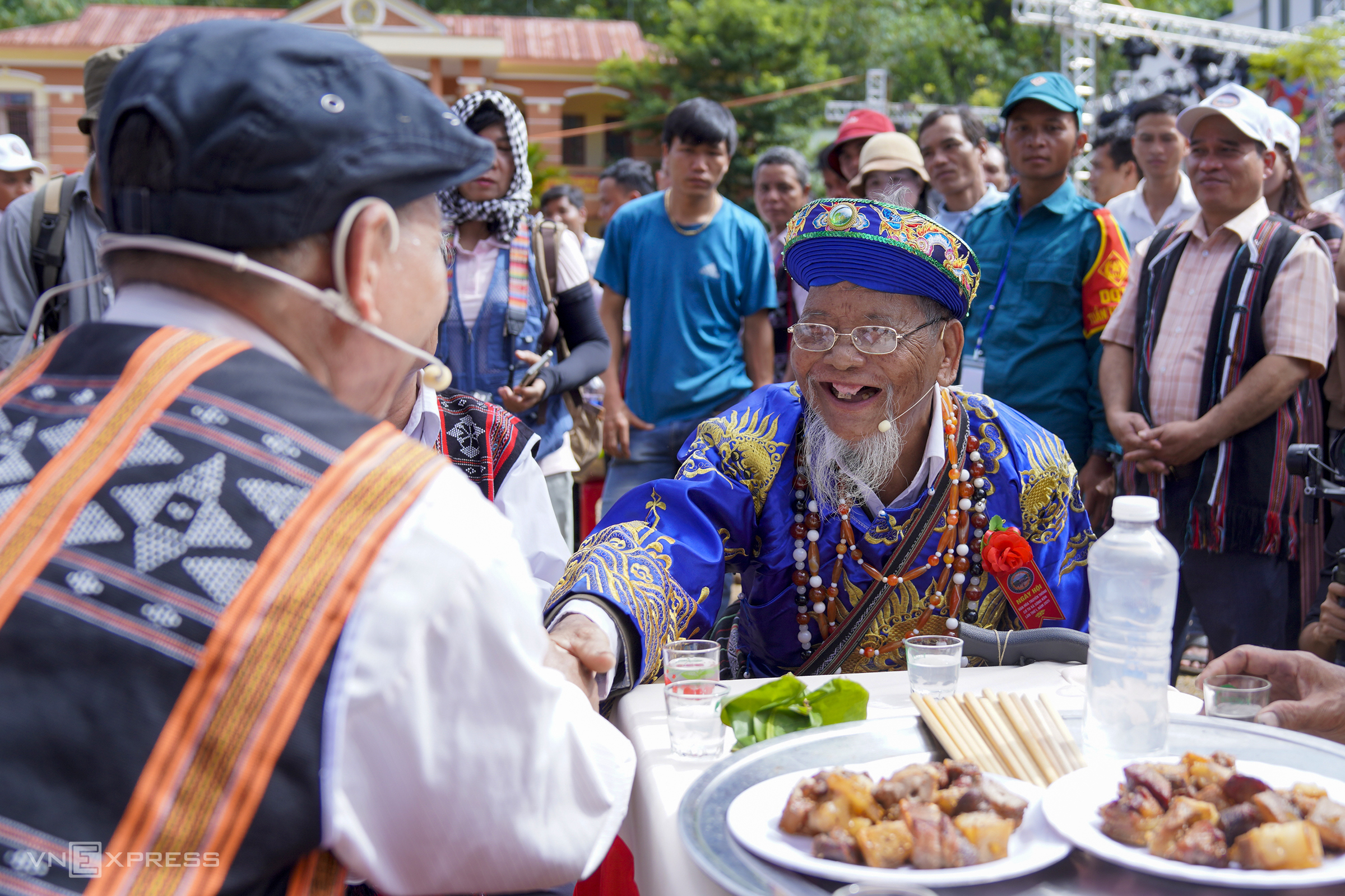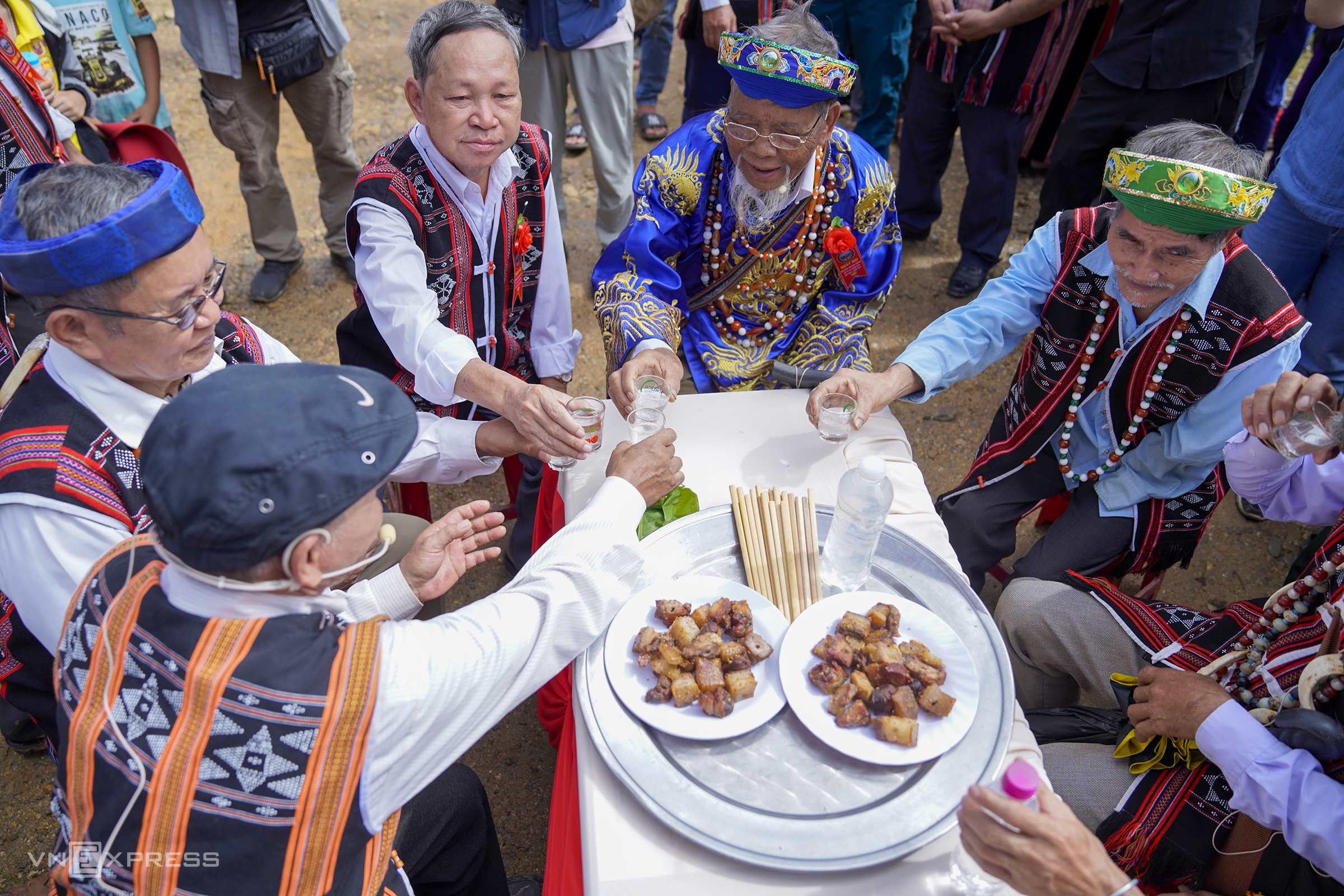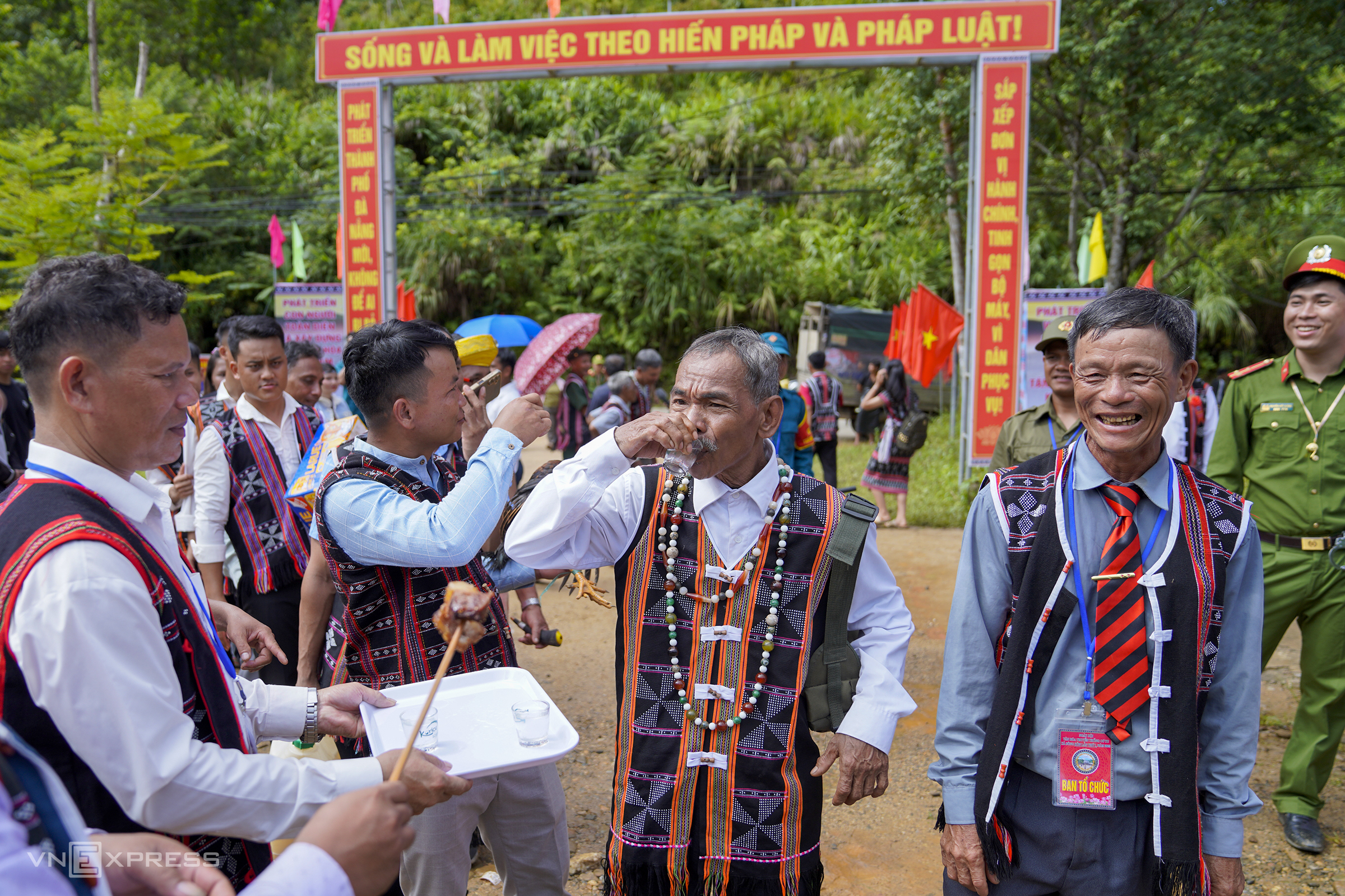 Influential community members from the three villages were welcomed before the ceremony. The new Song Kon village headquarters is located in the former Jo Ngay village, making Jo Ngay's village elder the host, while the elders from A Ting and Song Kon were the guests.