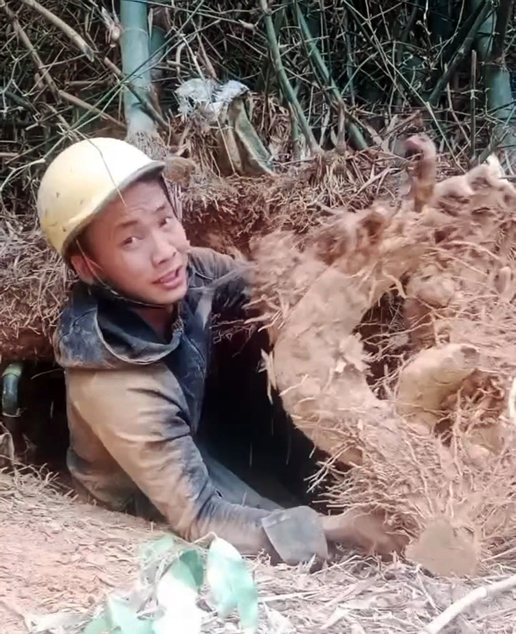 After selecting a suitable plant, diggers use shovels to dig deep around the root, and a hand saw to separate the stalk above, taking the root section strong enough to grow roots and shoots. According to Hung, this profession is not only arduous but also risky, as bamboo clumps often harbor bees, and snakes can be found at the base. "I've been bitten by snakes two times and stung by bees many times," he recounted.