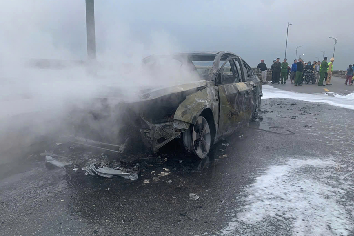 The 5-seater car destroyed after the fire. Photo: Hung Le |