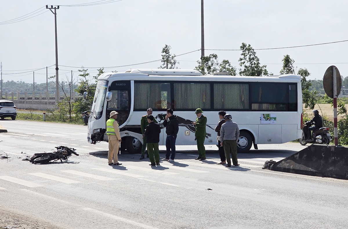 Around 11:30 on 8/1, three teenagers from Quang Trach commune, riding together on a single motorcycle, were traveling on national highway 1 in the north-south direction. Upon reaching Tu Loan hamlet, their motorcycle collided with a passenger bus that was making a U-turn in the same direction.
