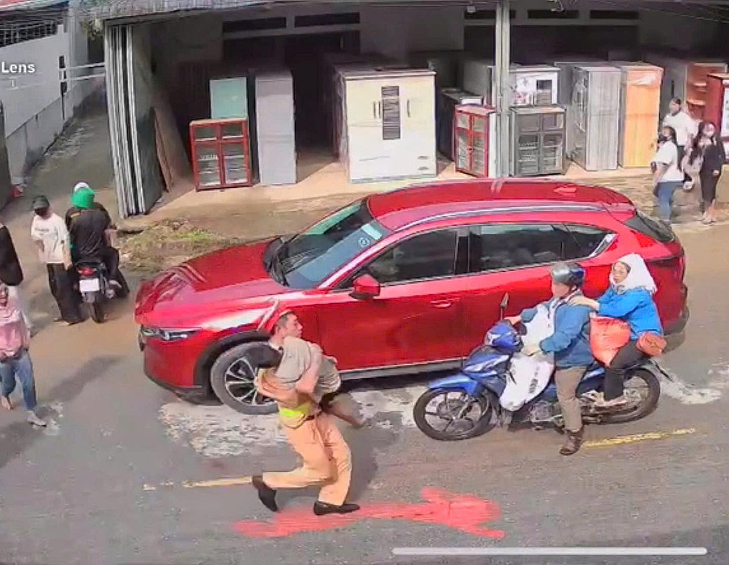 At that moment, the child was in critical condition. First Lieutenant Truong Van Tuyen personally carried the child from the scene to an open area, performing on-site first aid measures like chest compressions to maintain the victim's heartbeat.