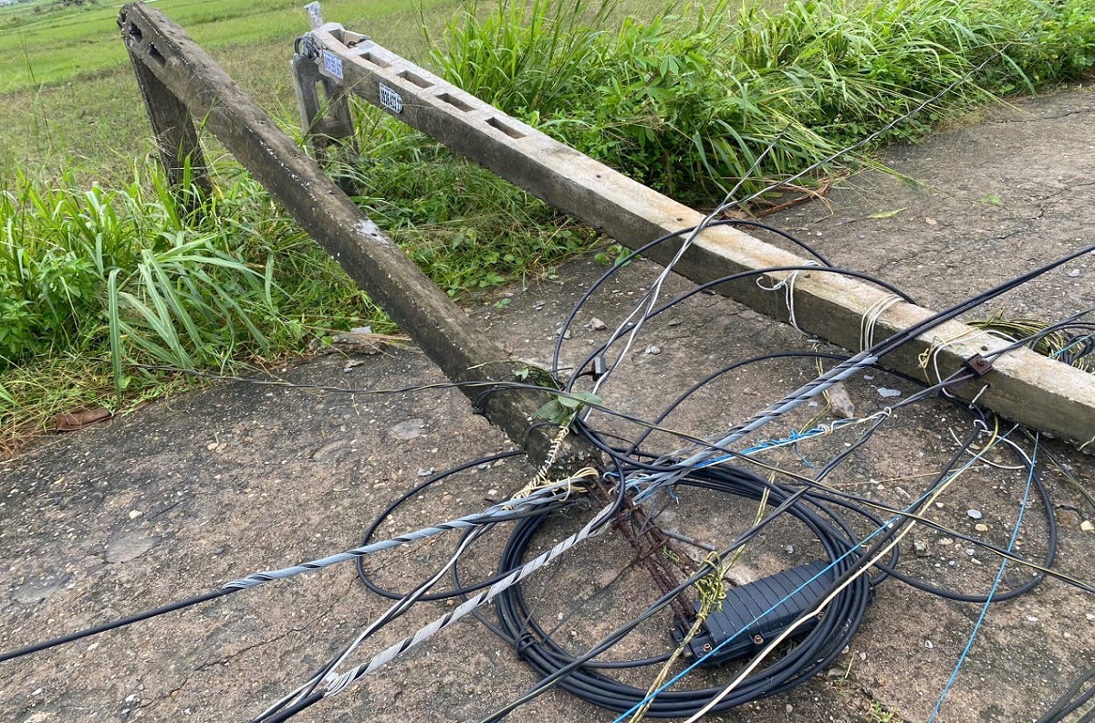 A utility pole snapped by the tornado. Photo: Nguyen Thinh