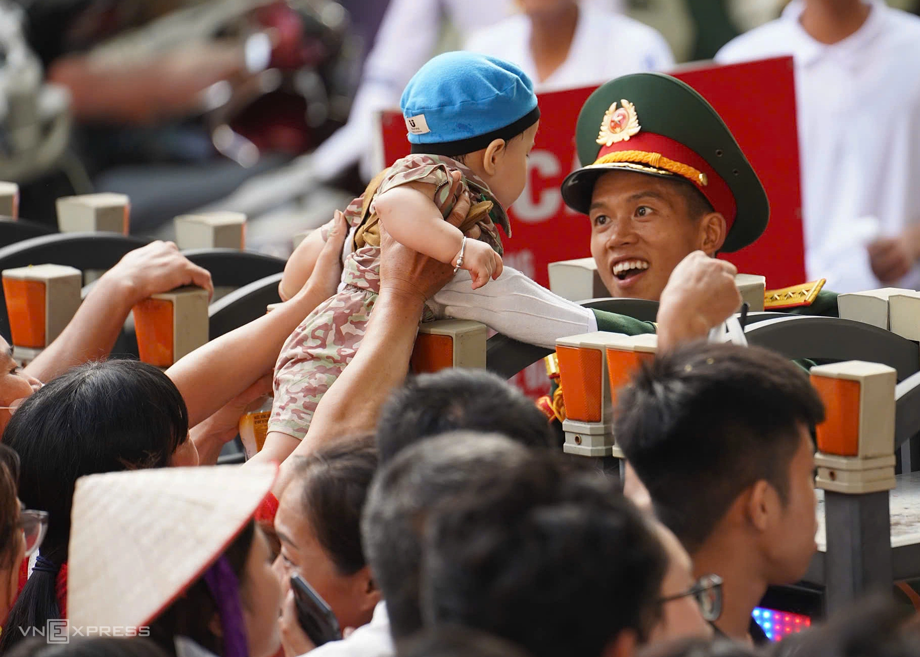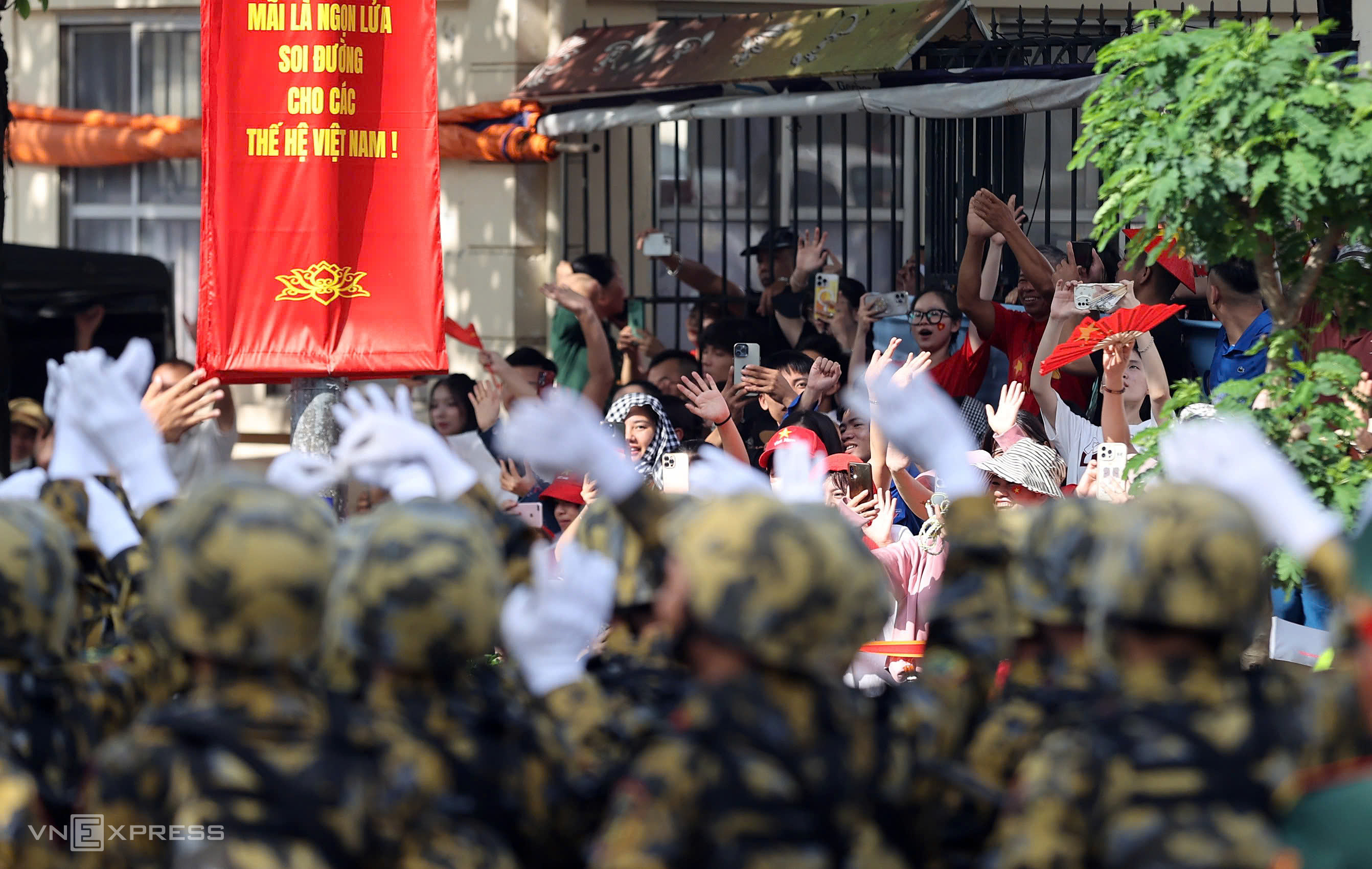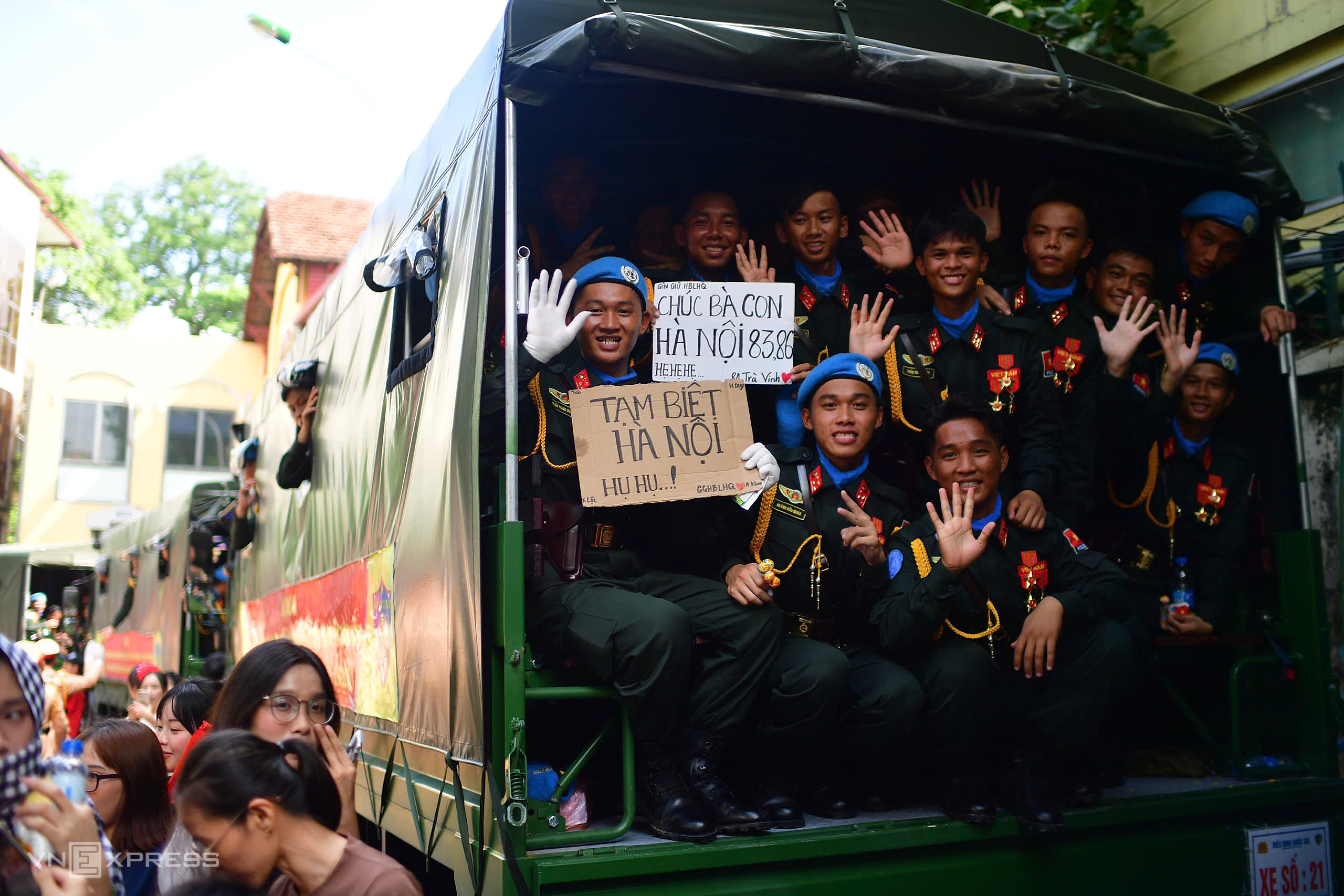 After two hours parading through Ba Dinh Square and the capital's central streets, the army, police, and foreign military contingents gathered at various locations, including Quan Ngua Sports Palace, Tran Khanh Du - Hong Ha Street near August Revolution Square, and Thong Nhat Park. Hurried embraces and poignant farewells took place before the soldiers returned to their accommodations in Mieu Mon, Son Tay, and Hoa Lac.