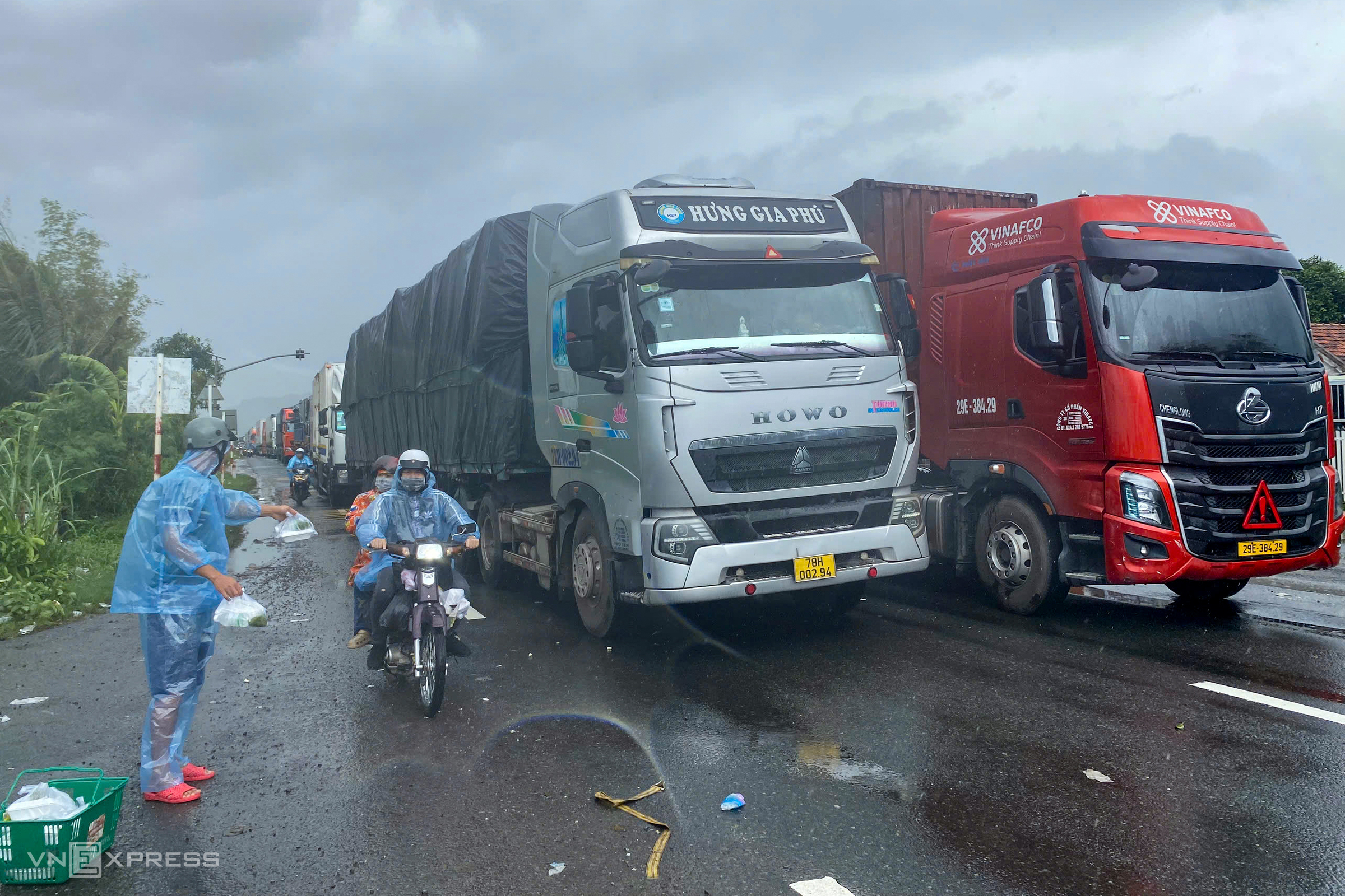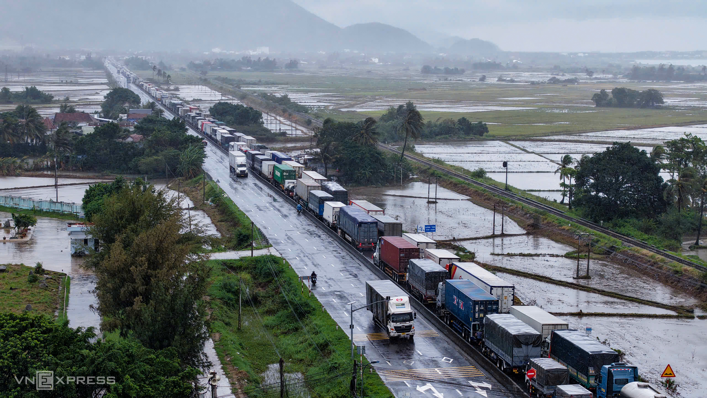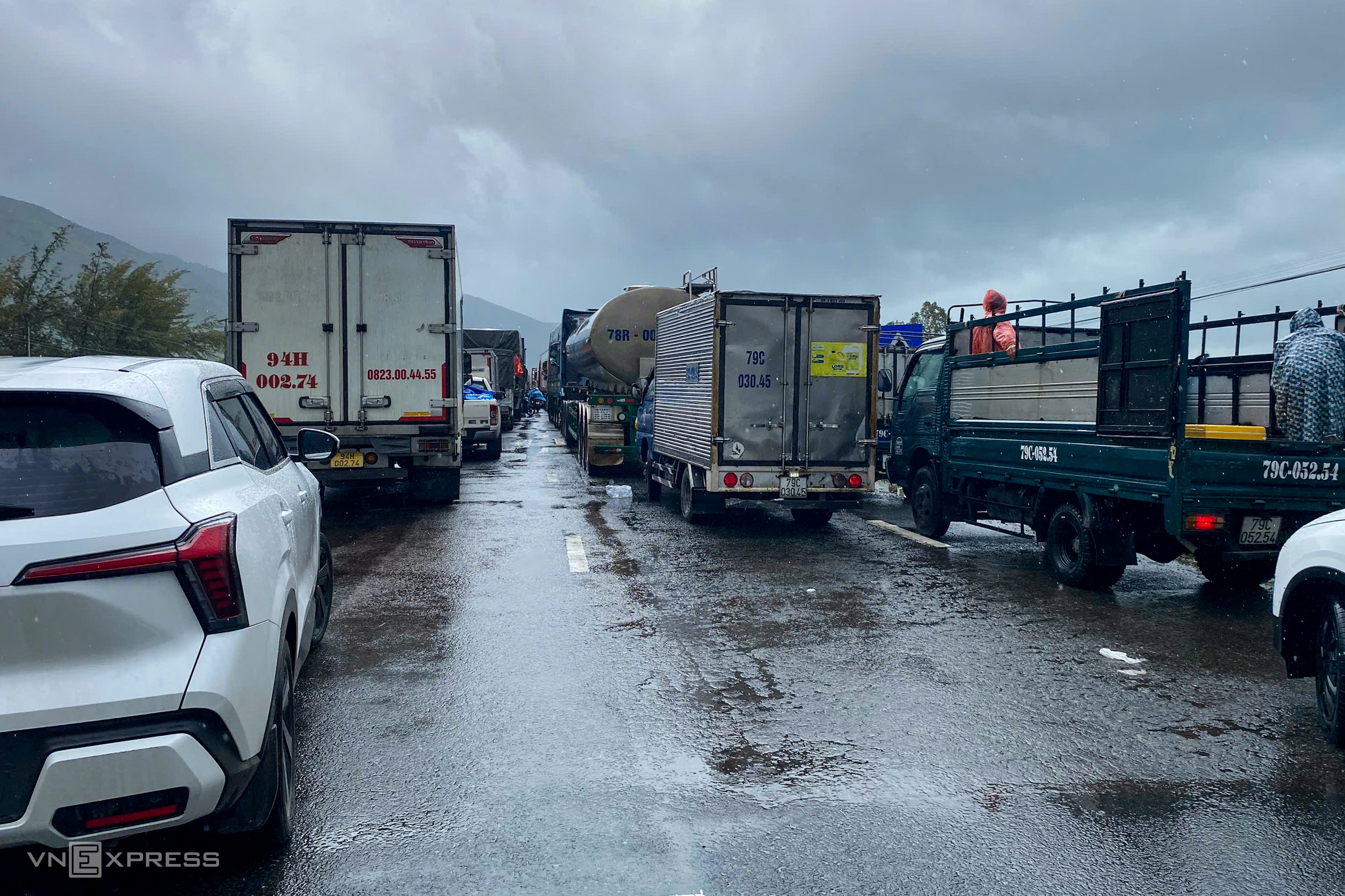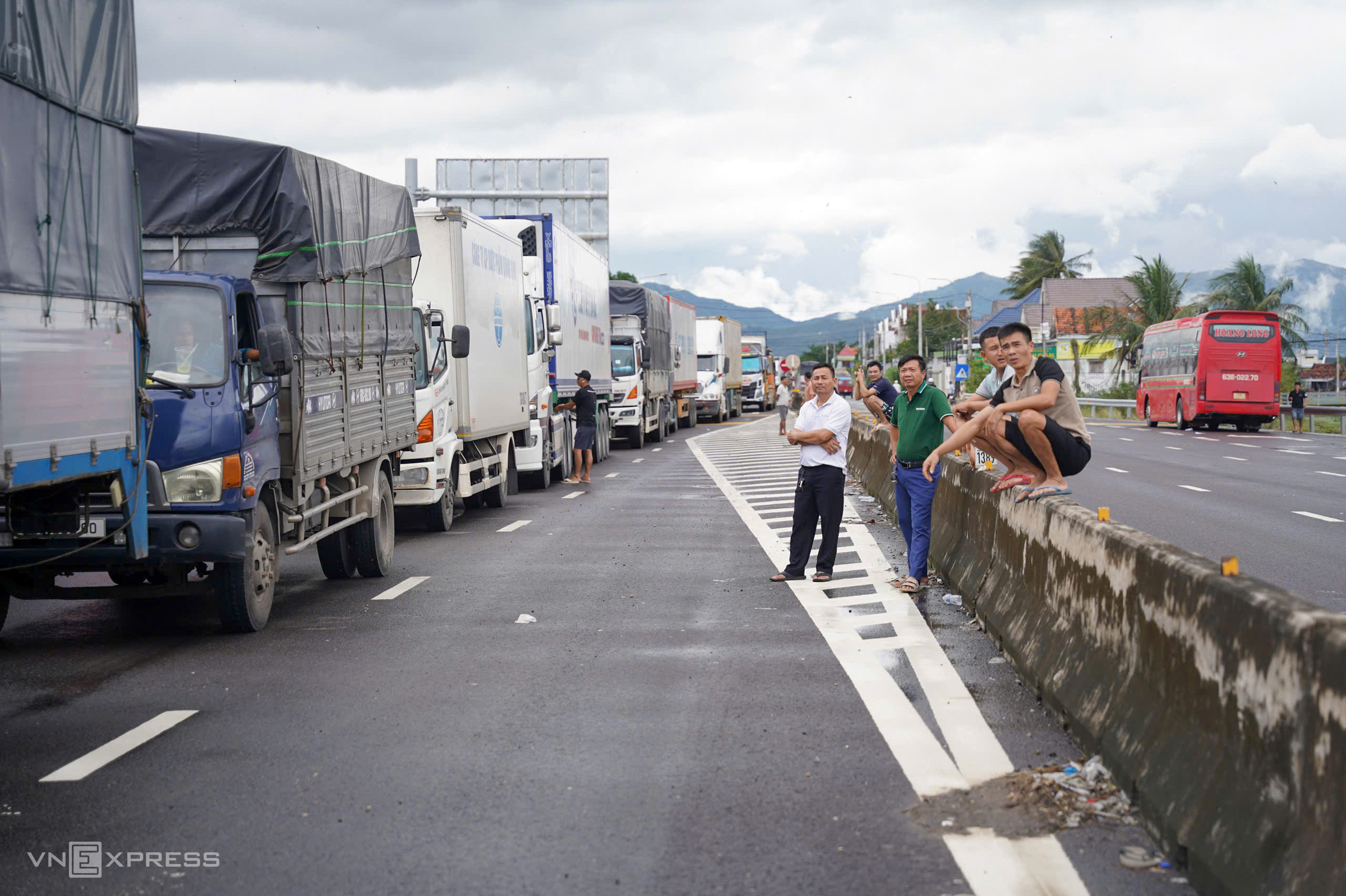 Hundreds of vehicles stopped and waited at the interchange of Van Phong Nha Trang Expressway and national route 1, near Co Ma tunnel, Khanh Hoa province.