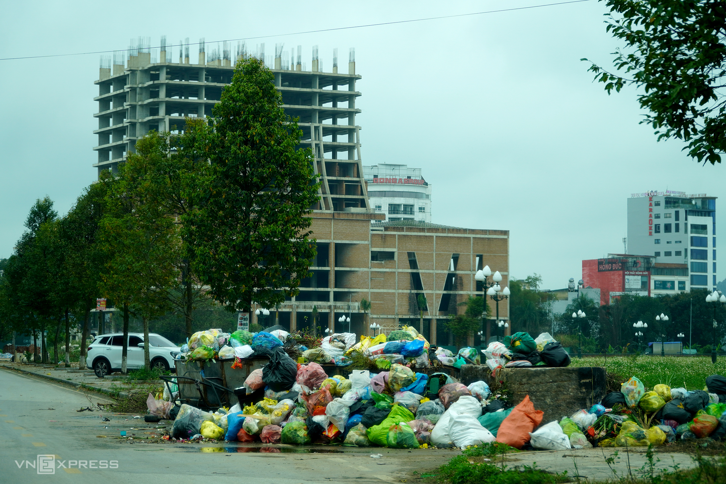 Waste piled up across Thanh Hoa's inner city, 23/2. Video: Le Hoang