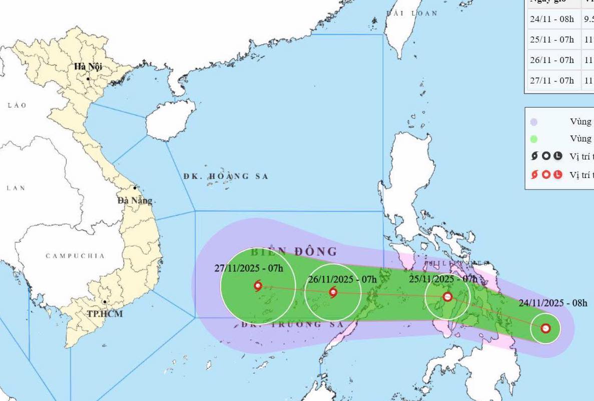 By 7 a.m. tomorrow, the tropical depression is expected to be over central Philippines, maintaining its intensity, speed, and direction before entering the South China Sea. The NCHMF forecasts that by 7 a.m. on 26/11, the system will strengthen into a storm over the southeastern waters of the central South China Sea, with maximum sustained winds of level 8, gusting to level 10.