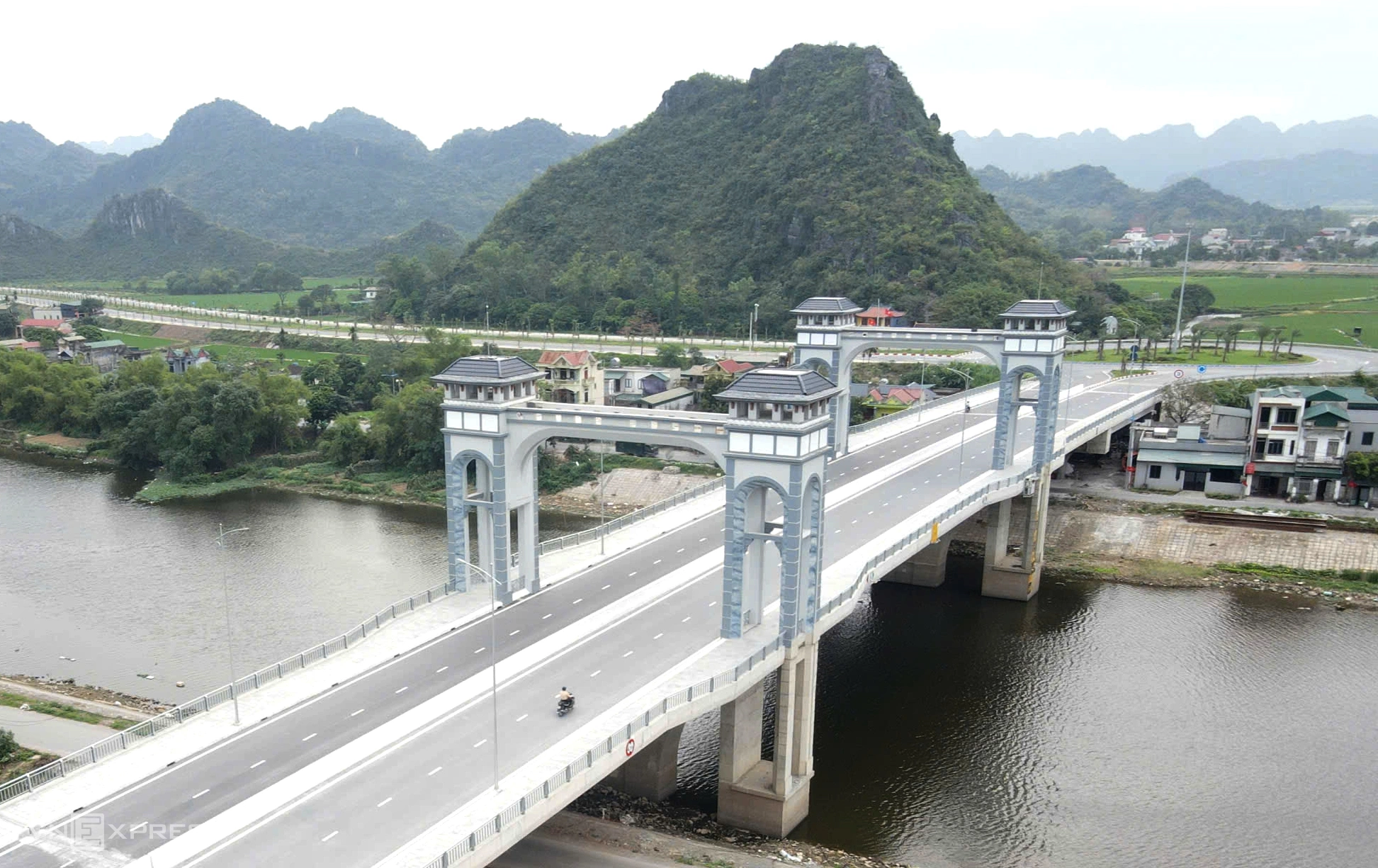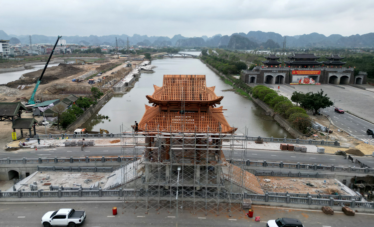 Approximately 60 km away, in Hoa Lu ward, another bridge is under construction across the Trang An River, with a total investment of nearly 180 ty VND. This project is designed to integrate both traffic and landscape viewing.