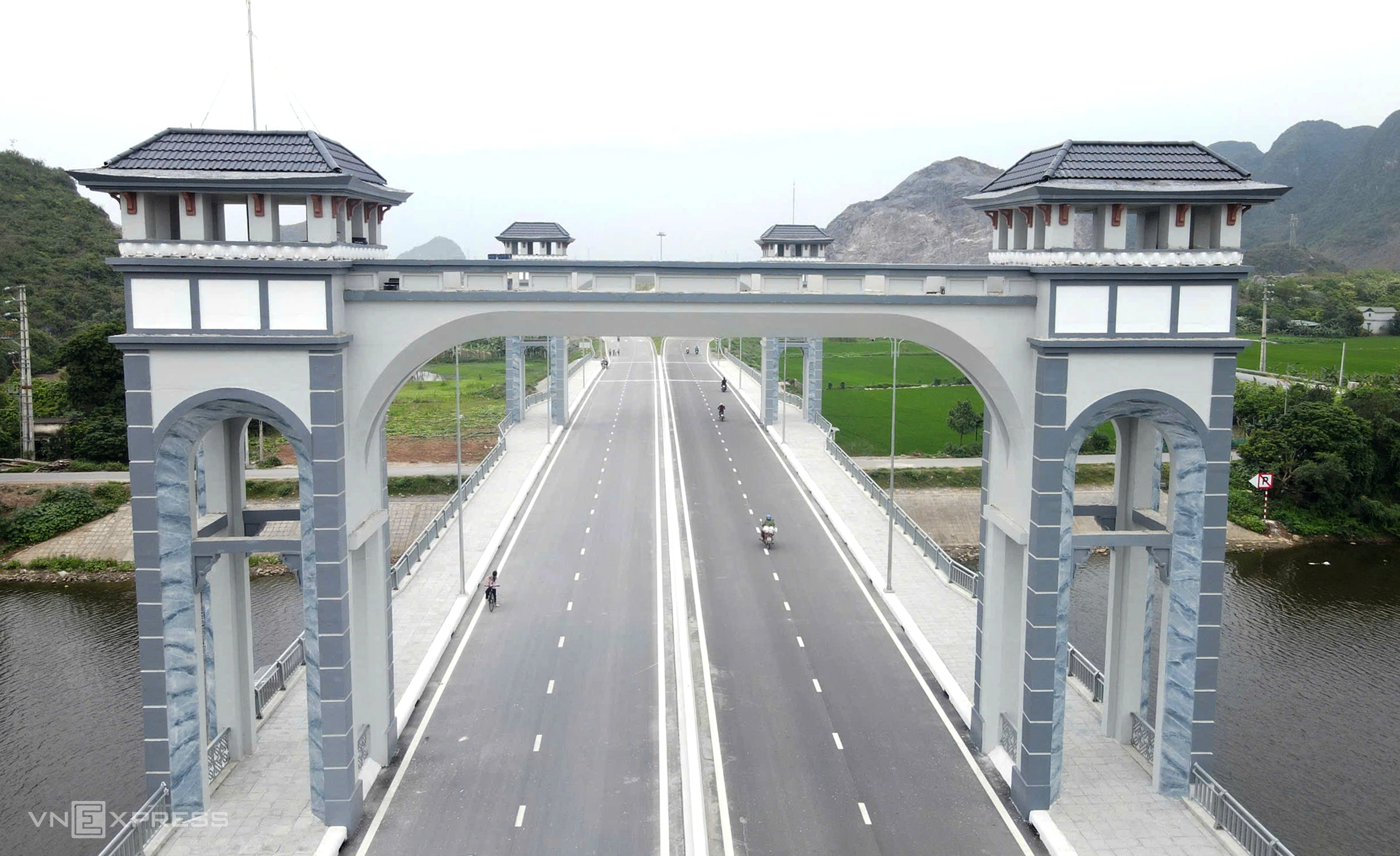 The Tan Lang bridge is 253 m long and 22,5 m wide, constructed using prestressed reinforced concrete with the balanced cantilever method. Its architectural highlight is two symmetrically placed observation towers. These tall, airy towers, topped with dark tiled roofs, create a visual landmark and offer expansive views along both banks of the Day River.