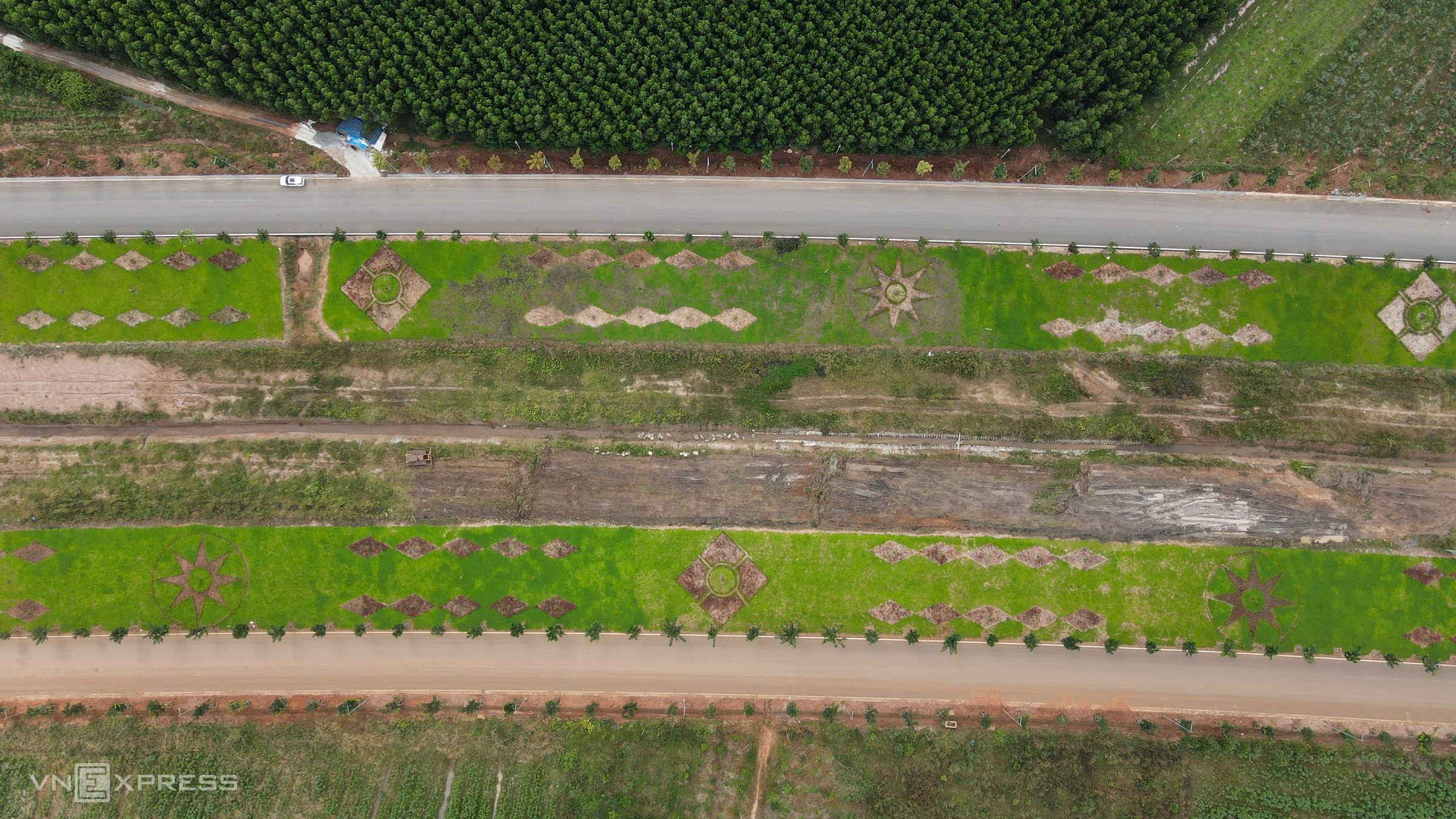 Utility poles and trees are being installed along both sides of Route T1, with plants and flowers creating a scenic landscape. Engineers regularly inspect the greenery to ensure healthy, uniform growth by the time the airport becomes operational.