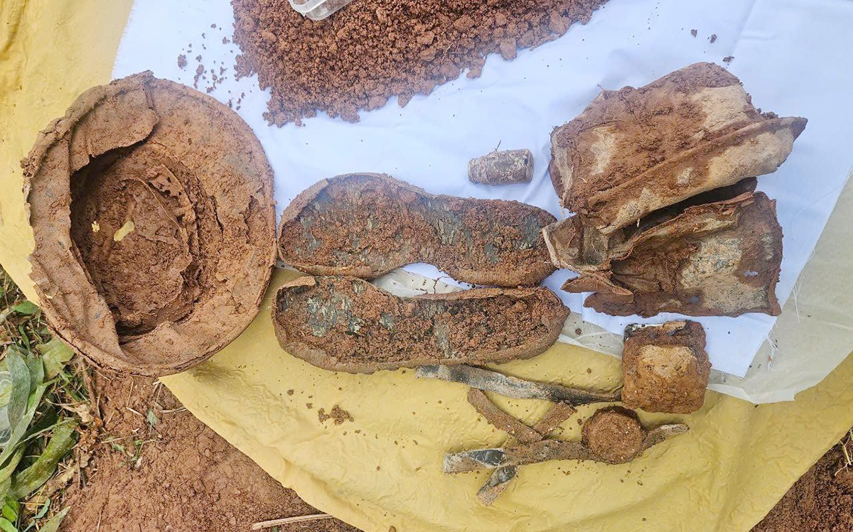 The remains were found at a depth of 0,8 to one meter, with many bone fragments wrapped in canvas. Each set of remains was accompanied by artifacts including a pith helmet, shoes, a belt, an army hammock, an ammunition magazine, AK rounds, and other personal belongings.