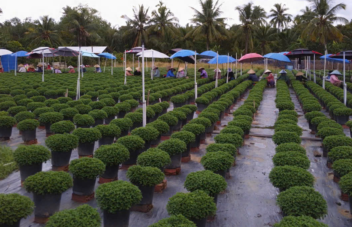 Cho Lach ornamental flower village supplies 12-15 million products to the market each Tet season. Photo: Trung Nguyen |