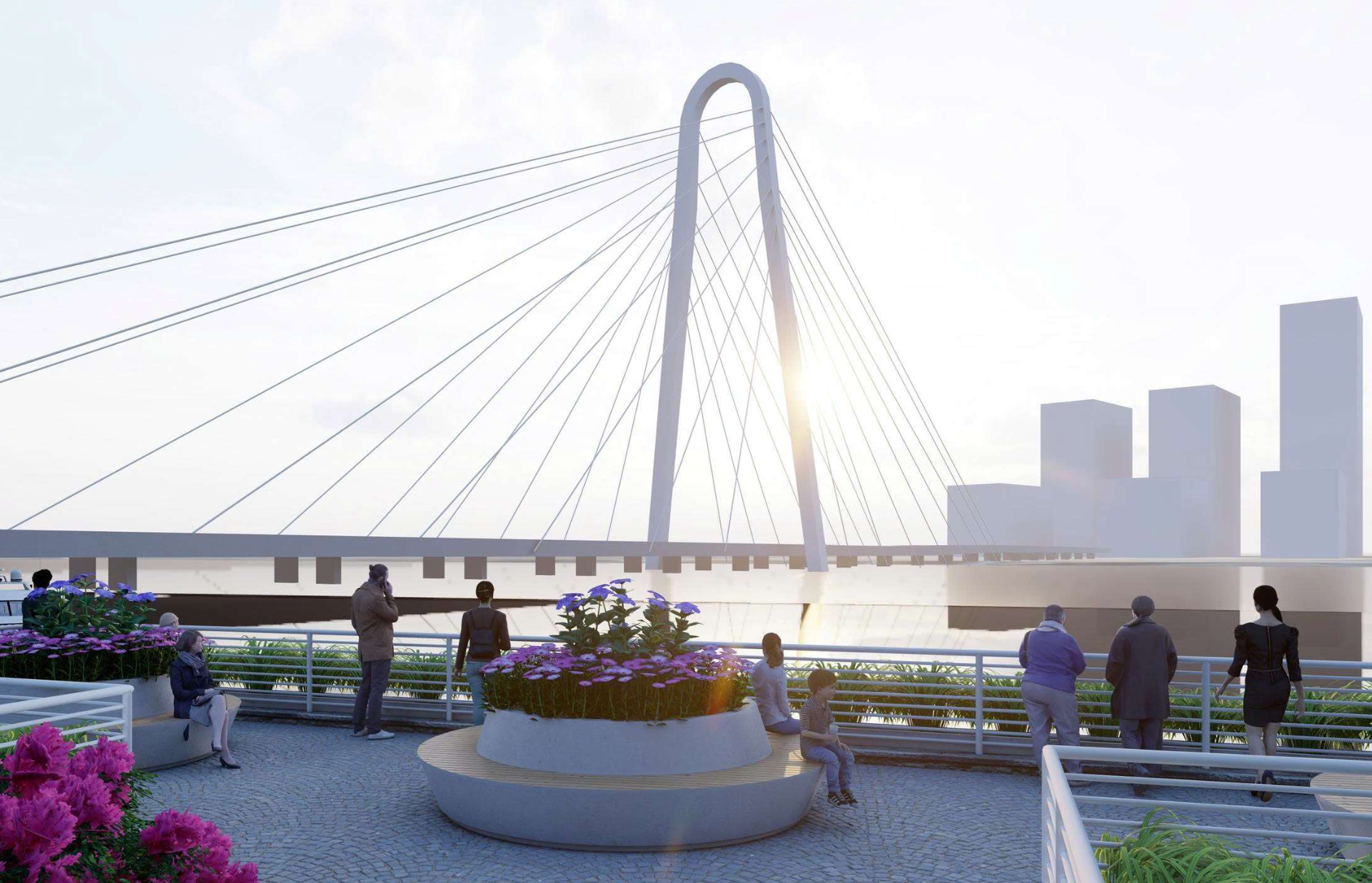 The two bridgeheads will be equipped with stairs and elevators; the modern design colors will harmonize with the surrounding landscape.