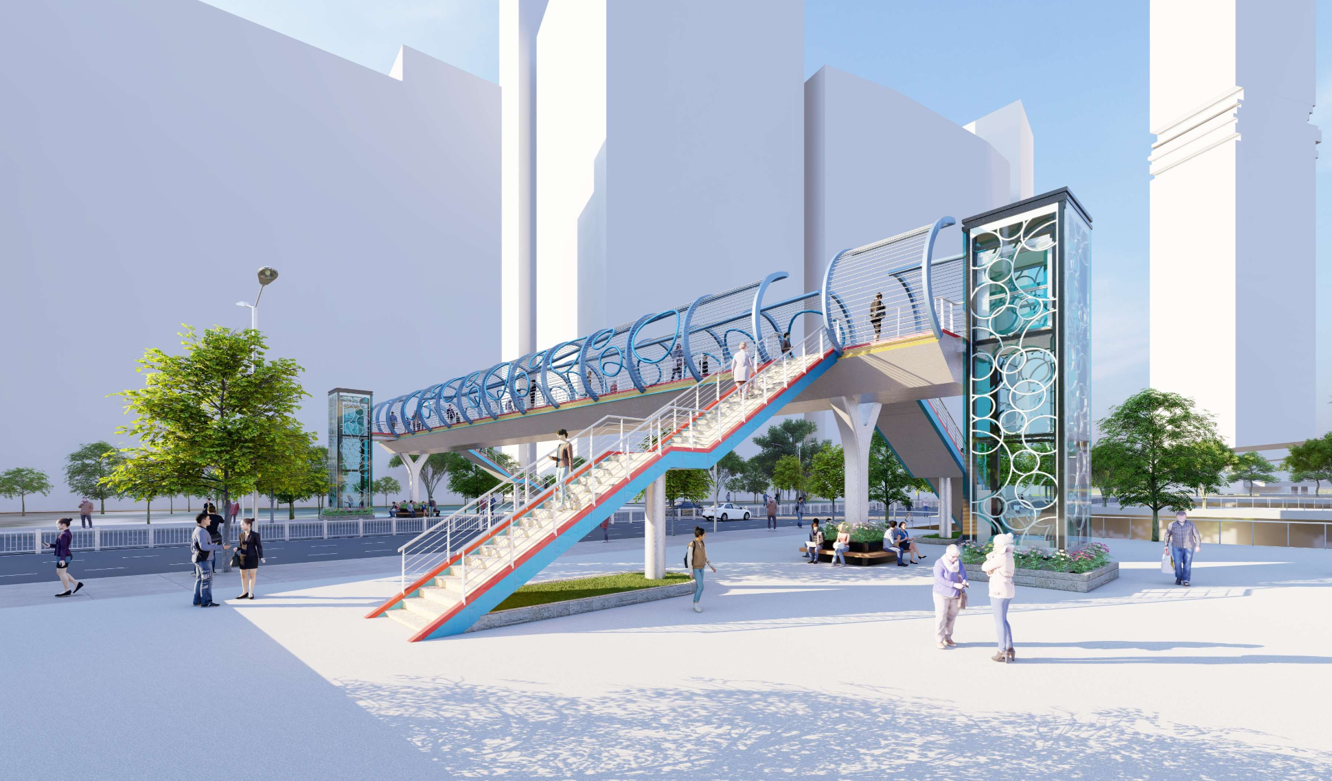 At the Thai Van Lung - Ton Duc Thang intersection, the pedestrian bridge will feature a mesh dome with a dominant green tone.