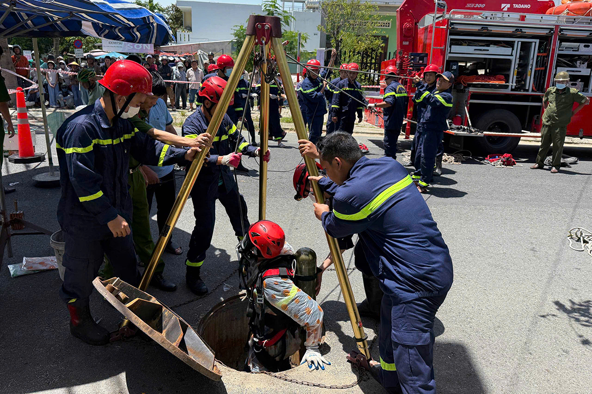 Da Nang police dispatched two rescue vehicles and dozens of officers to the scene. After an assessment, they determined the two victims were trapped approximately 8 meters down in the pipe and had died. Their bodies were retrieved within 10 minutes.