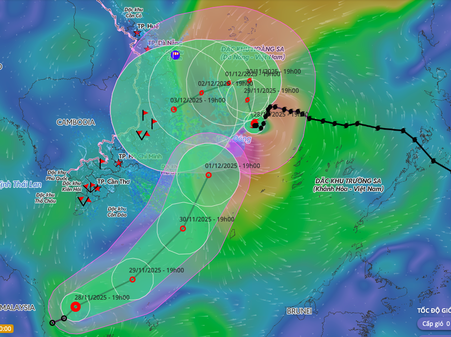 On the afternoon of 28/11, the National Center for Hydro-Meteorological Forecasting announced that a tropical depression was moving from an area near the equator, east of Malaysia, northeastward at approximately 15 km/h. Currently, wind speeds are at level 6-7, gusting to level 9, and it is forecast to enter the East Sea tonight or tomorrow morning. By 19:00 tomorrow, the center of the cyclone is expected to be in the southwestern part of the southern East Sea, with wind speeds increasing to level 7, gusting to level 9.