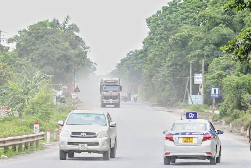 Hanoi's suburban roads shrouded in dust. Photo: Gia Chinh |