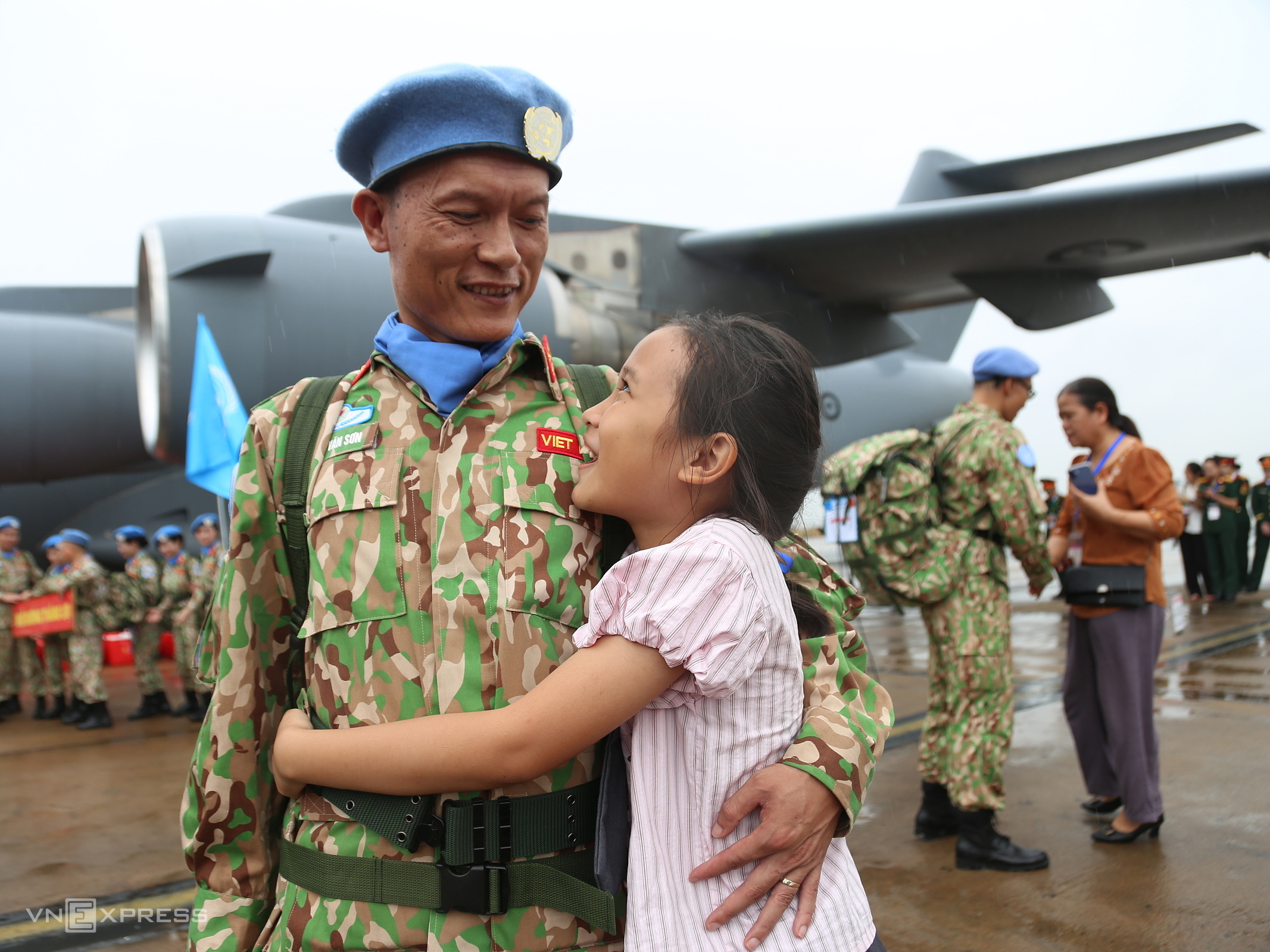 Major Tran Van Son hugged his 8-year-old daughter goodbye. Son, who works at the 211 Military Hospital in Gia Lai, will be responsible for diagnostic imaging and medical support in South Sudan.