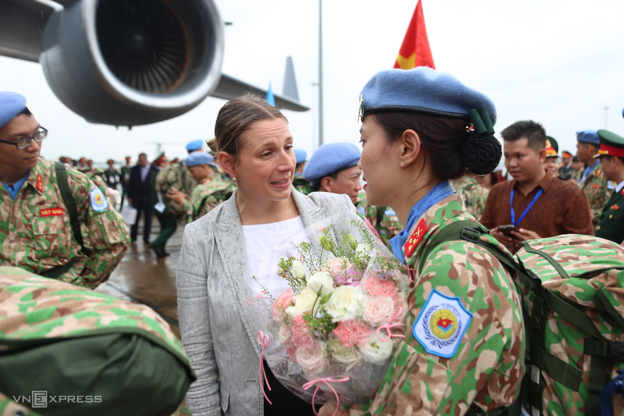 Chloe Maric, First Secretary for Defense Policy of Australia, offered words of encouragement to Lieutenant Do Hoang Thanh Tam, 24, the youngest member of the contingent.
