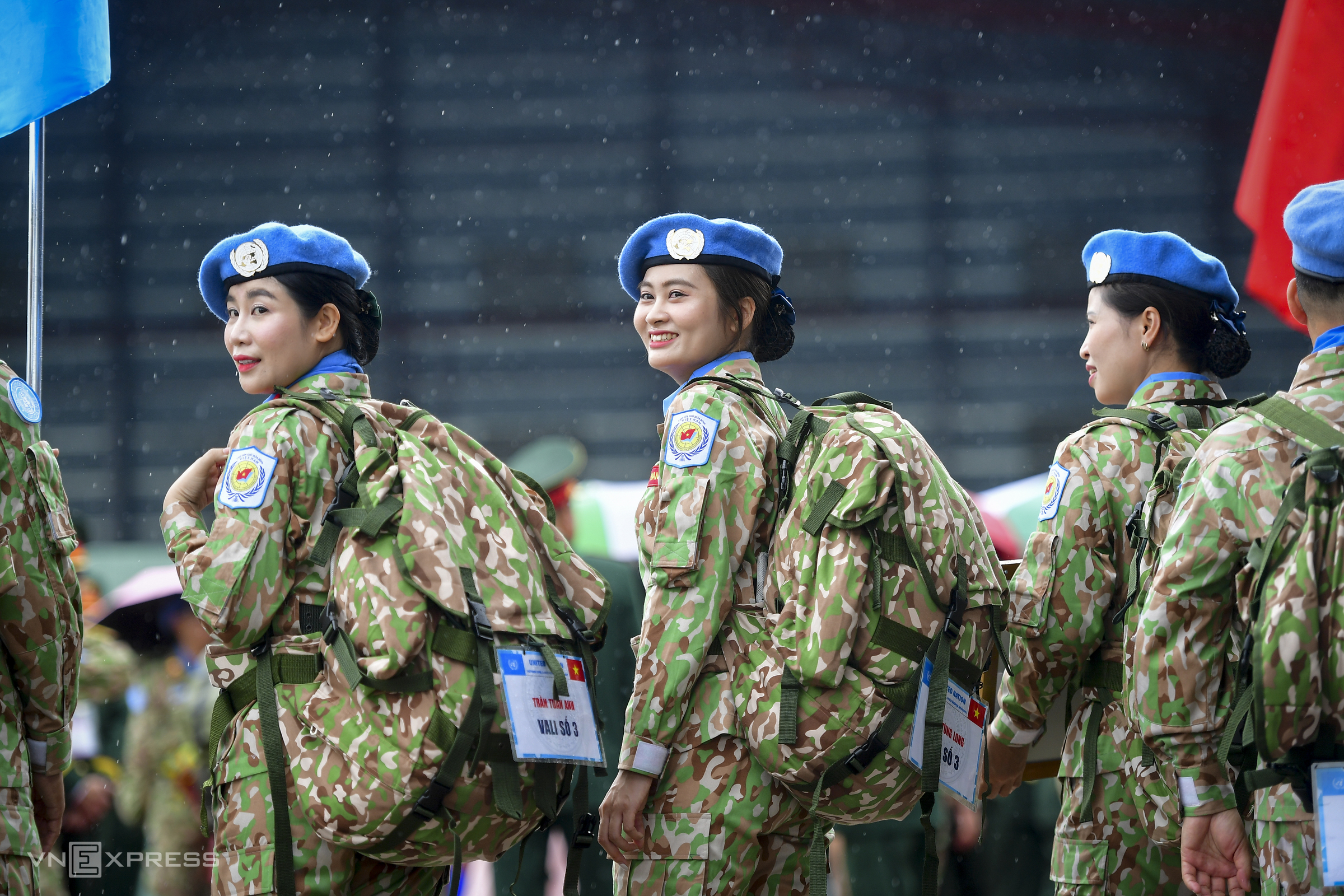 Lieutenant Duong Thi Hong Nhung, 25, (pictured center) previously worked at the Department of Foreign Affairs (Ministry of National Defense). After being selected for the mission, she underwent 6 months of training in skills related to constructing administrative facilities, schools, and hospitals.