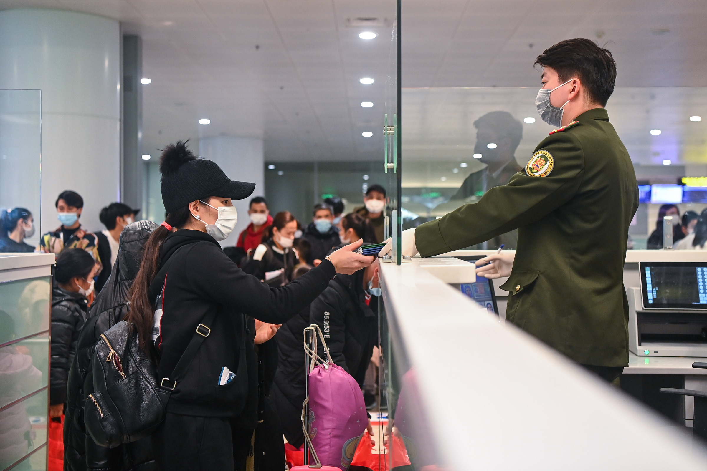 Foreign visitors complete entry procedures at Noi Bai International Airport, Hanoi on 8/3/2022. Photo: Giang Huy