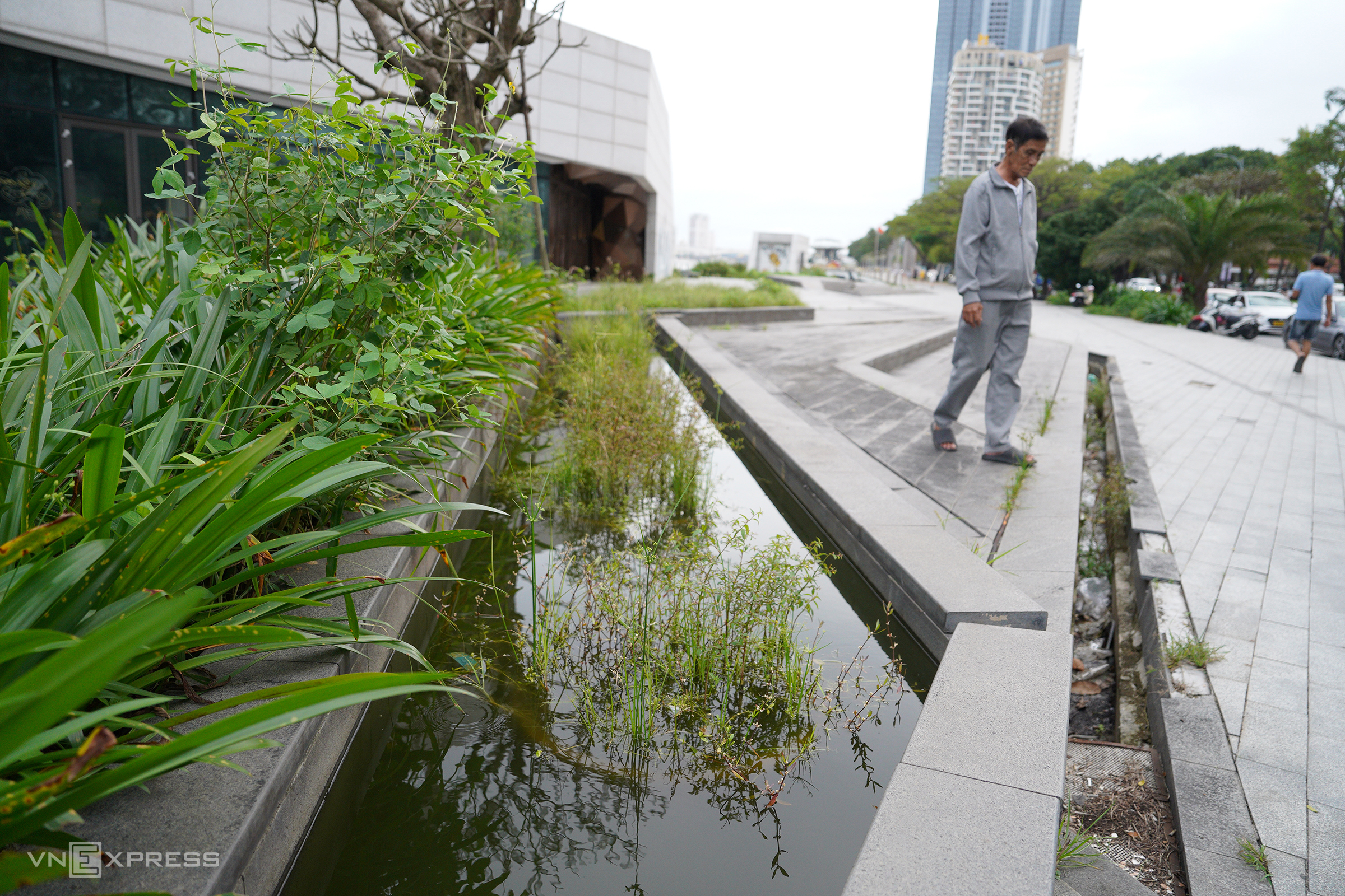 Decorative ponds have turned into stagnant pools, and drainage channels are now littered with trash.