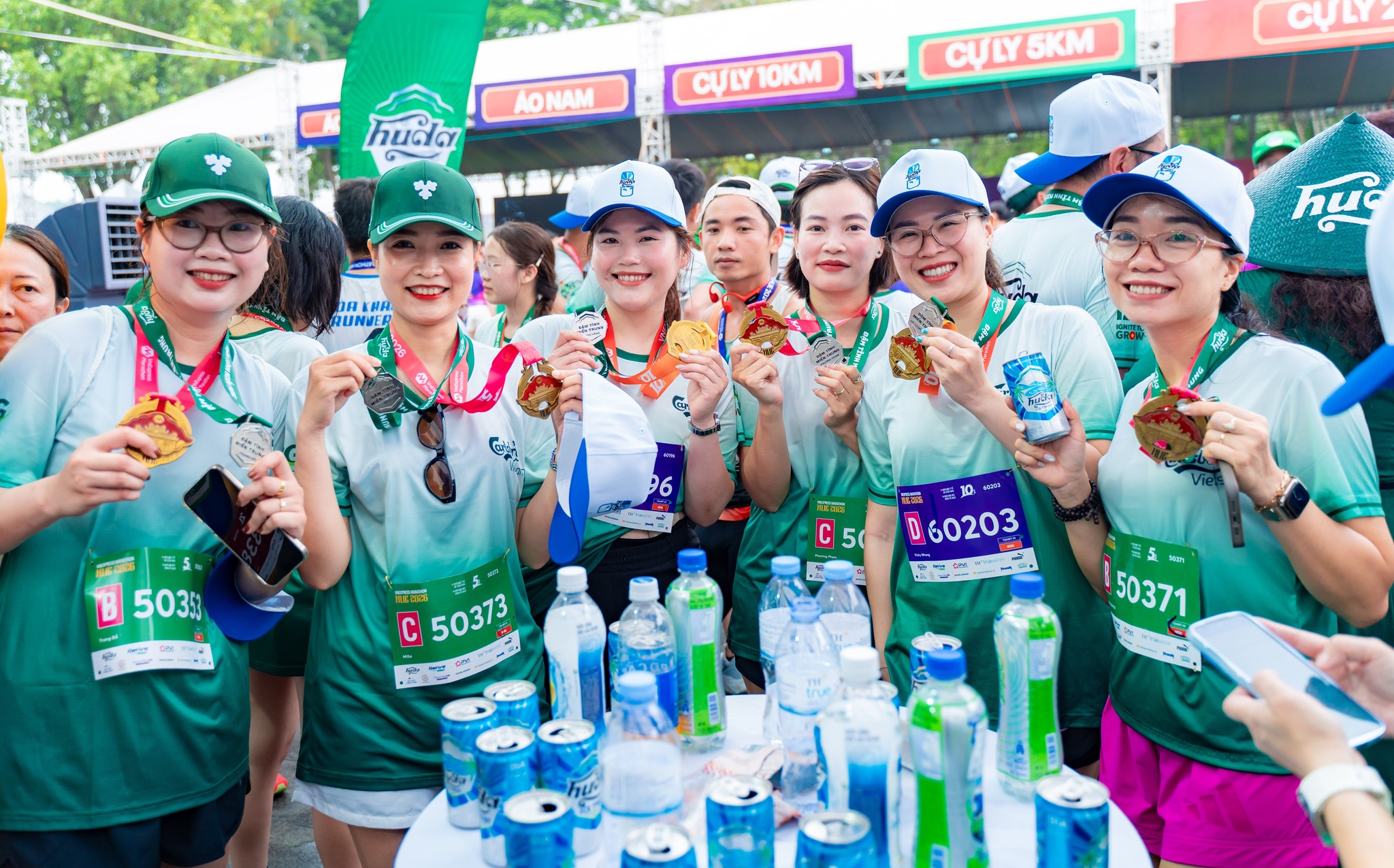 General Director Andrew Khan personally completed the 5km distance, which followed the scenic Huong River. Runners, some dressed in blue ao dai and conical hats bearing the Huda logo, were a noticeable presence as they crossed landmarks like Dap Da Bridge (for 21km runners) and Truong Tien Bridge, where the company flag was proudly displayed. Some participants even cosplayed distributing Huda beer, a Carlsberg brand deeply associated with the ancient capital. According to the company, each runner embodied positive energy, cohesion, and team spirit.