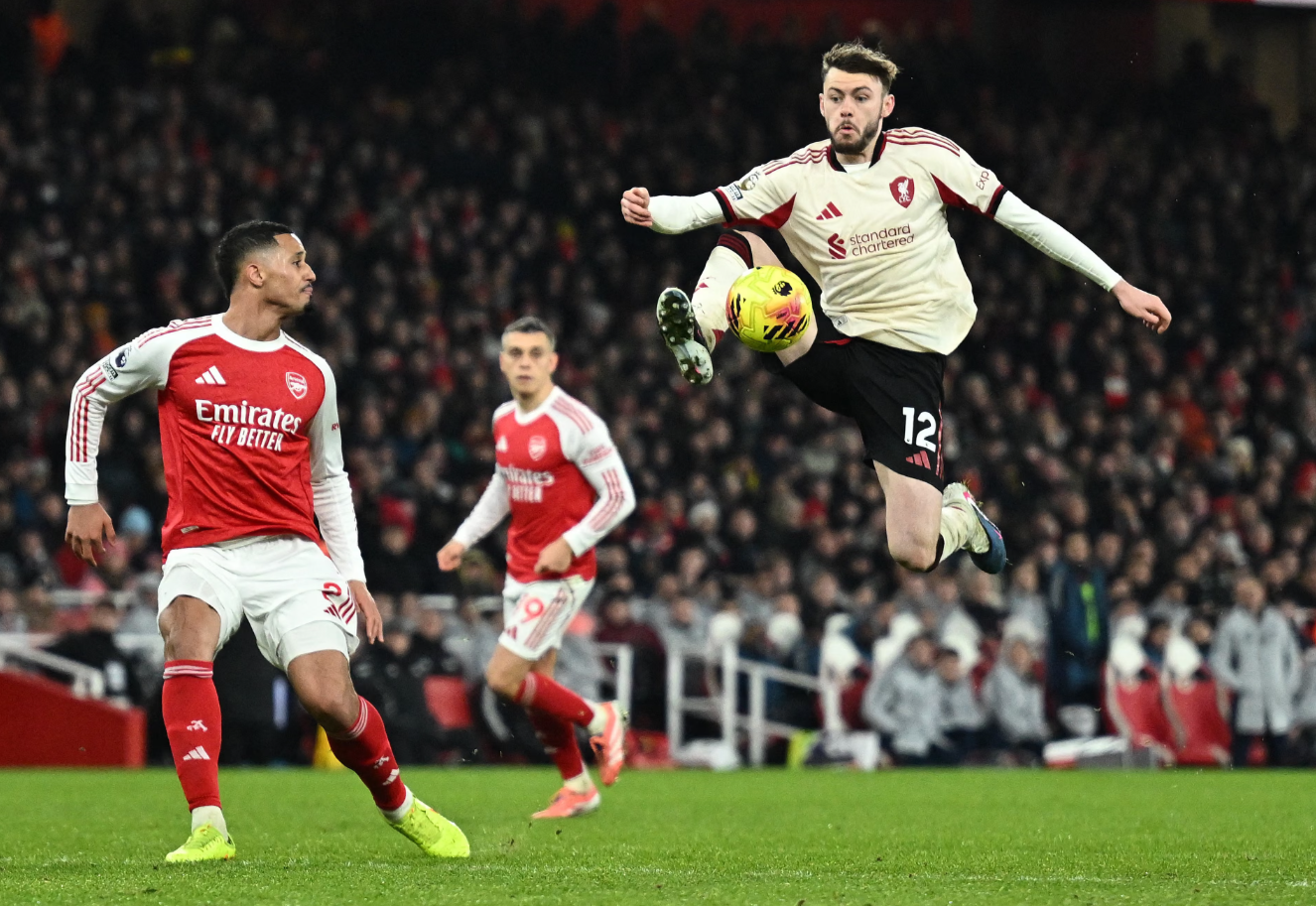 After about 30 minutes of complete dominance, Arsenal lost control within one or two minutes. When Liverpool gained better possession, the atmosphere on the pitch immediately shifted. Fear crept in, leading to errors from William Saliba and goalkeeper David Raya, allowing Conor Bradley to chip the ball against the crossbar.