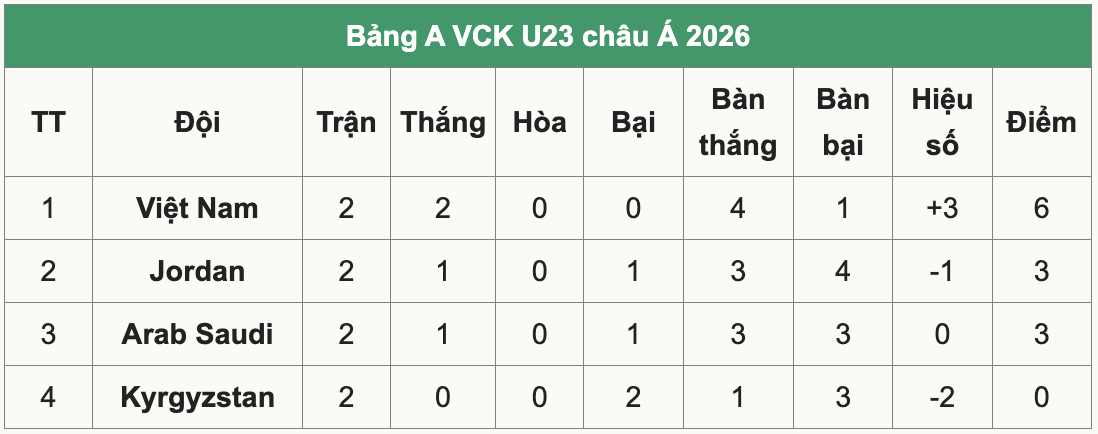 In their next match, Vietnam will face hosts Saudi Arabia on the evening of 12/1.