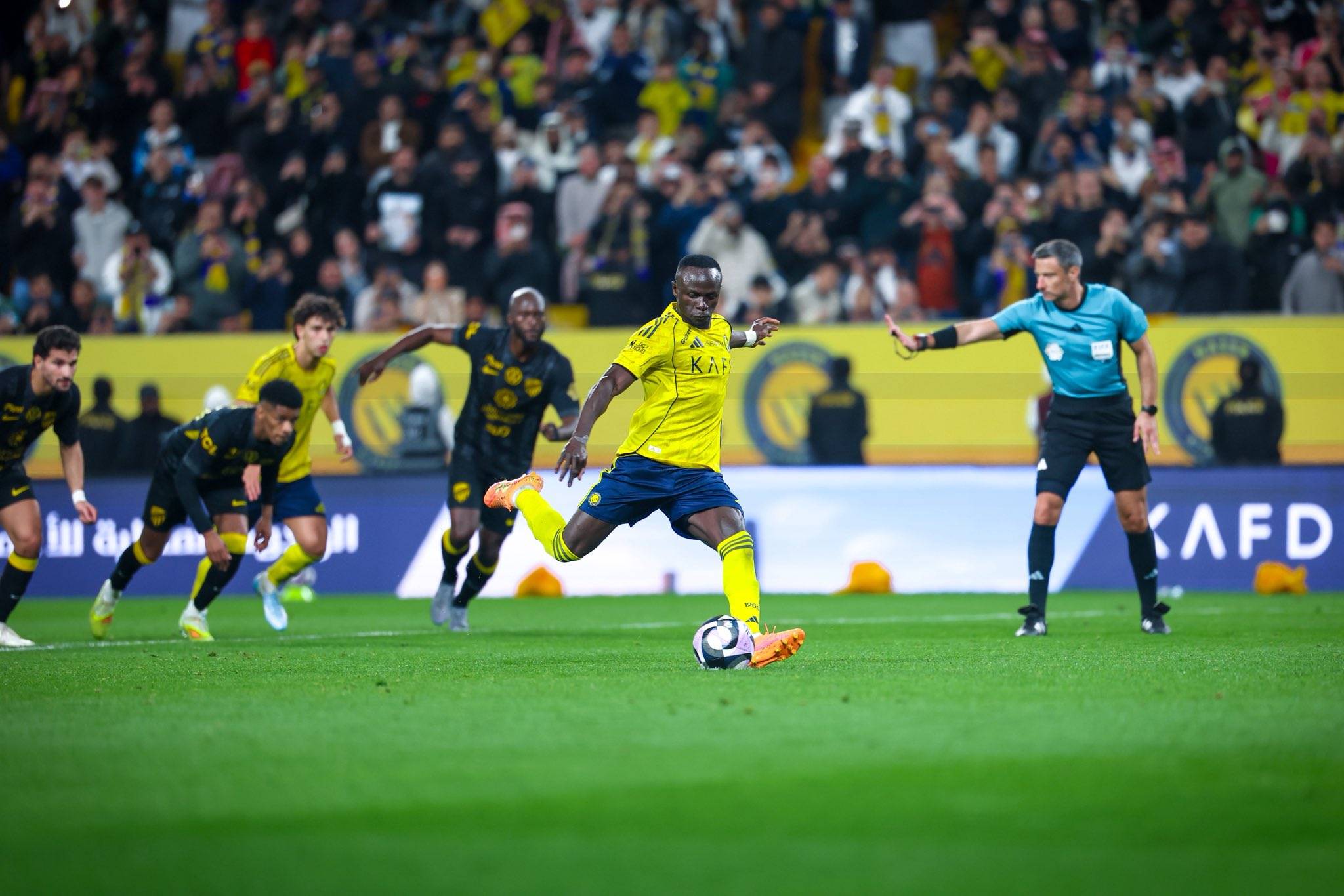 In the 82nd minute, fortune finally favored the home side. After Ayman Yahya's volley struck an Al Ittihad player's hand in the penalty area, Mane converted the penalty, opening the scoring.