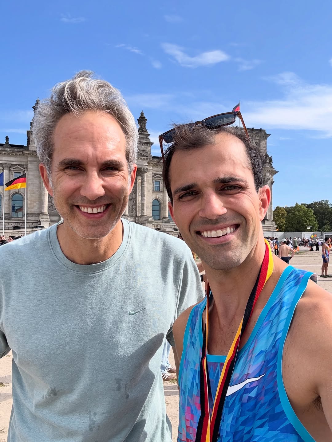 Jay Glidewell (right) poses with Sven Hock, who lent him a shoe. (Photo courtesy of Stefanie)