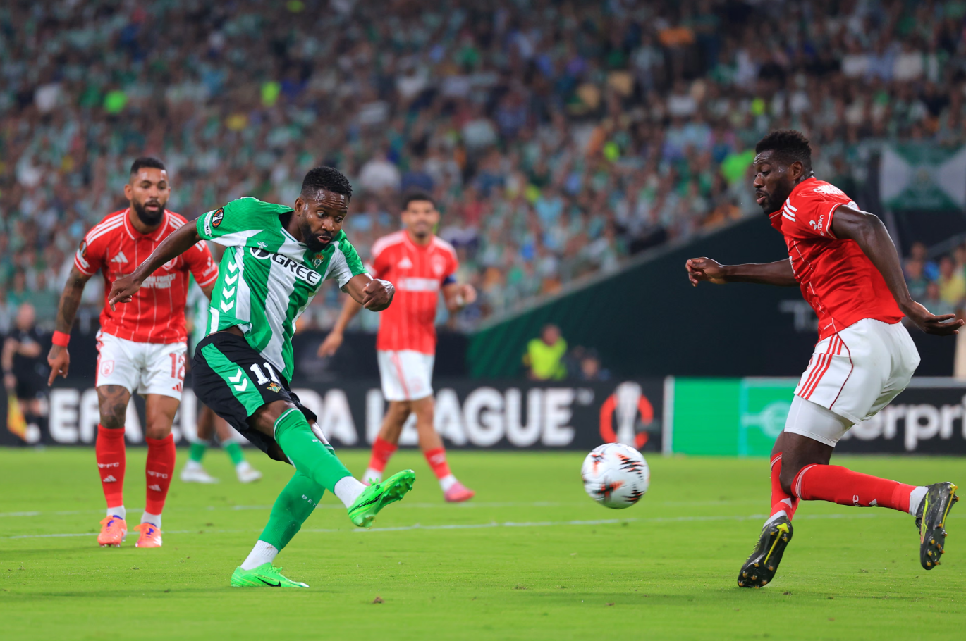 Cedric Bakambu scores the opening goal in the 2-2 draw between Real Betis and Nottingham Forest in their first Europa League match at La Cartuja Stadium, Seville, Spain on 24/9/2025. _Photo: UEFA_ |