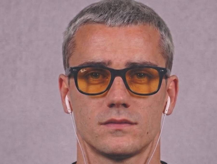 Griezmann wears glasses and headphones in response to Yamal. *Photo: Atletico Madrid*