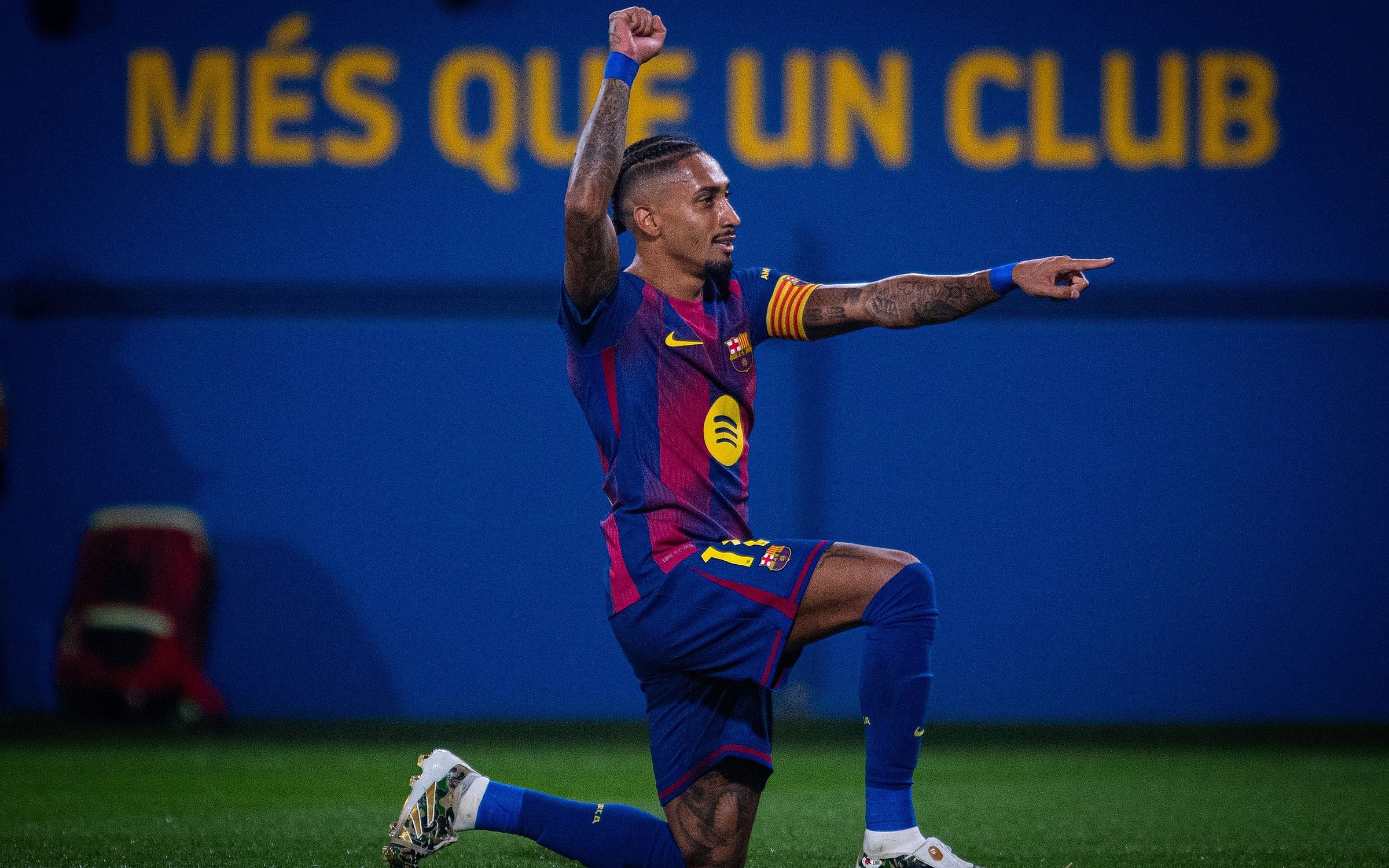 Raphinha celebrates a goal during Barca's 6-0 win over Valencia. Photo: FC Barcelona