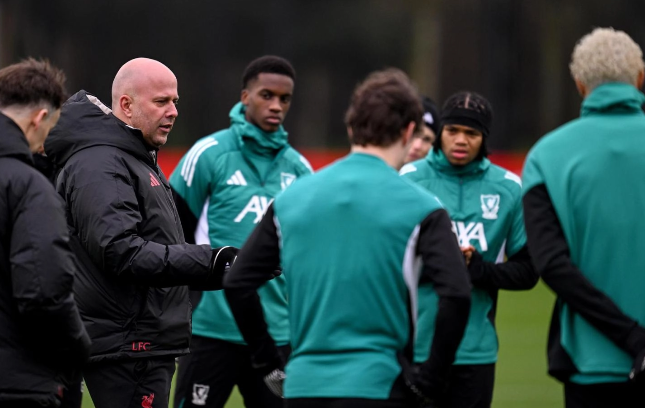 Coach Slot directs Liverpool's training session on 27/1. *Photo: Liverpool FC* |