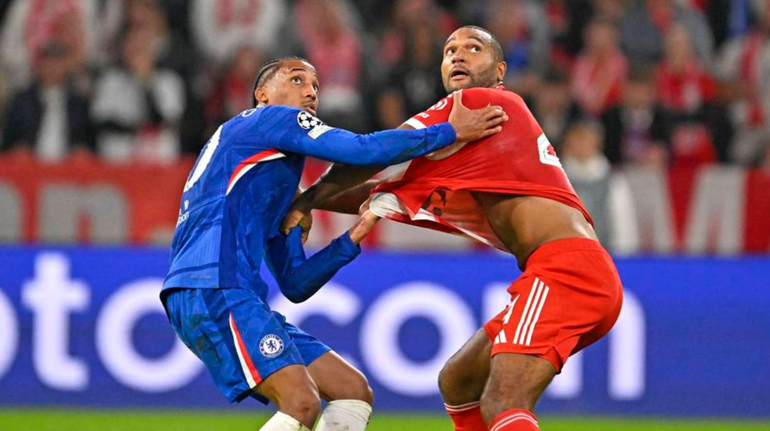 Jonathan Tah (right) challenges Joao Pedro during Bayern's 3-1 victory over Chelsea in their opening Champions League match at Allianz Arena, Munich, Germany on 17/9/2025. Photo: Sport |