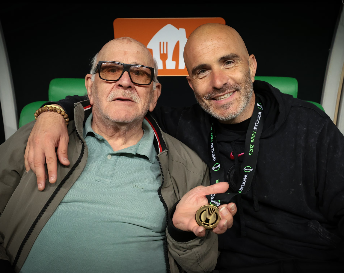 Manager Enzo Maresca (right) and his father Pasquale celebrate after Chelsea's UEFA Conference League triumph in the 2024-2025 season. Photo: The Guardian |