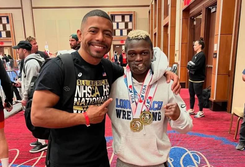 Sibomana-Rodriguez (right) became the 2026 U.S. high school wrestling champion. *Photo: Instagram*