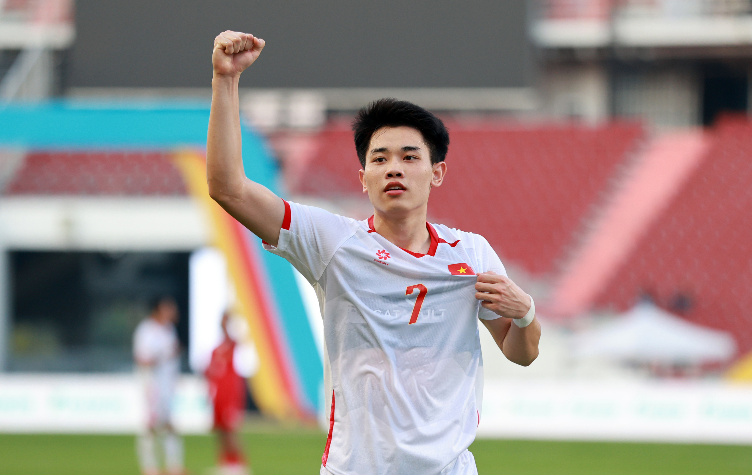 After scoring the second goal of the match, the forward from Cong an Ha Noi Club ran to celebrate. However, assistant referee Sanjar Shayusupov raised his flag for offside, leaving him stunned. |