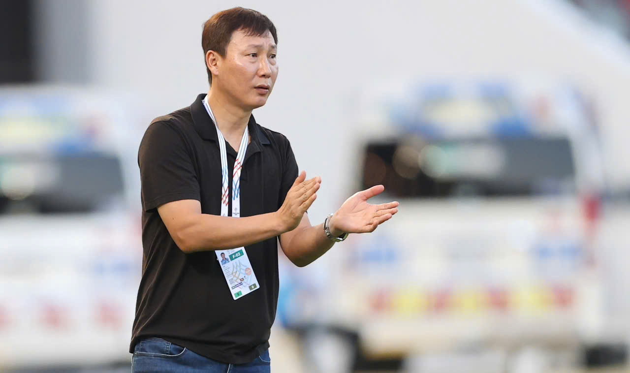Coach Kim Sang-sik applauded to encourage players during the Vietnam - Laos match at Rajamangala Stadium, Bangkok, in the first round of group B men's football at SEA Games 33 on 3/12. Photo: Duc Dong