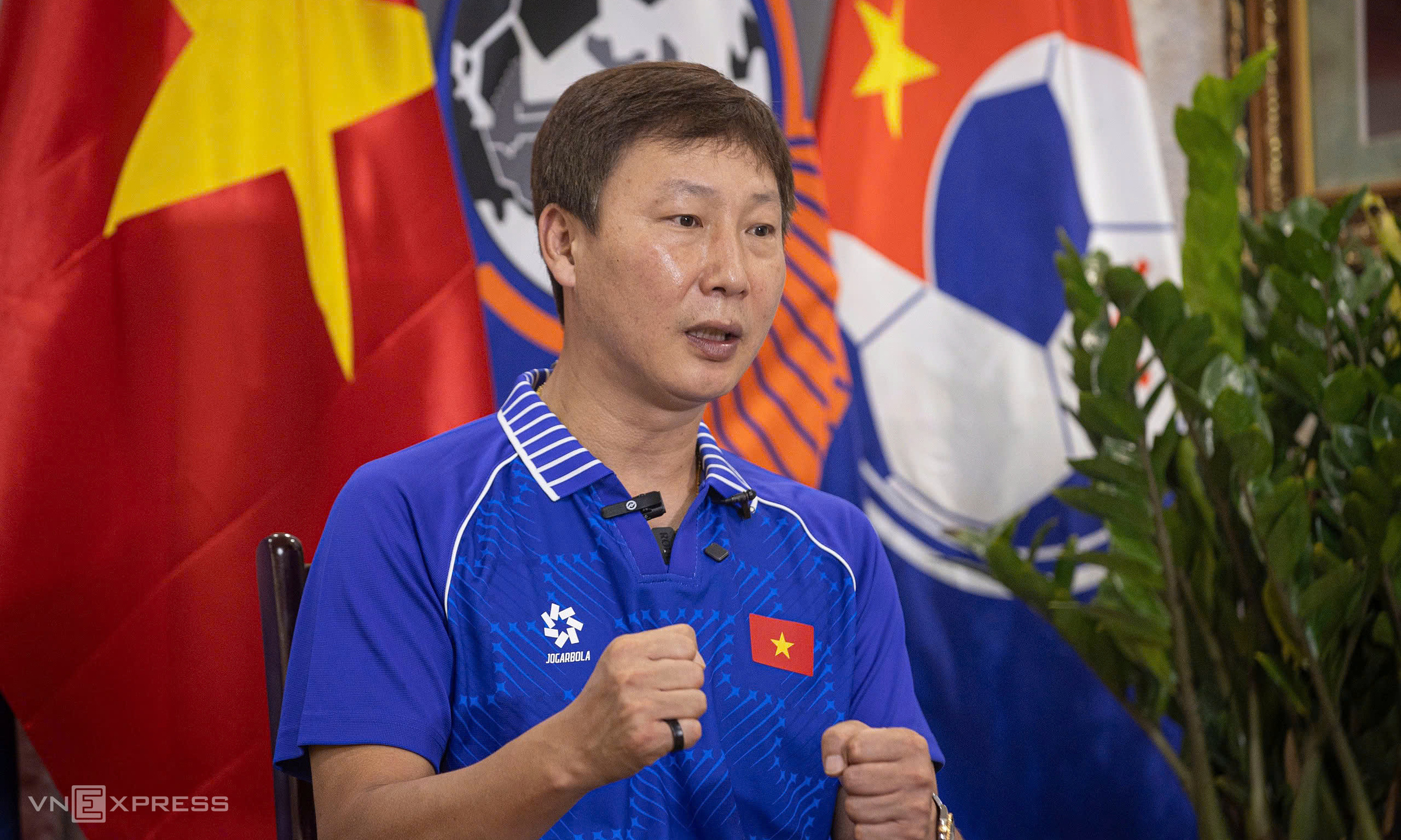 Coach Kim Sang-sik at the Vietnam Football Federation headquarters in Tu Liem ward, Hanoi, during the press conference on the morning of 22/12/2025. *Photo: Son Tung* |