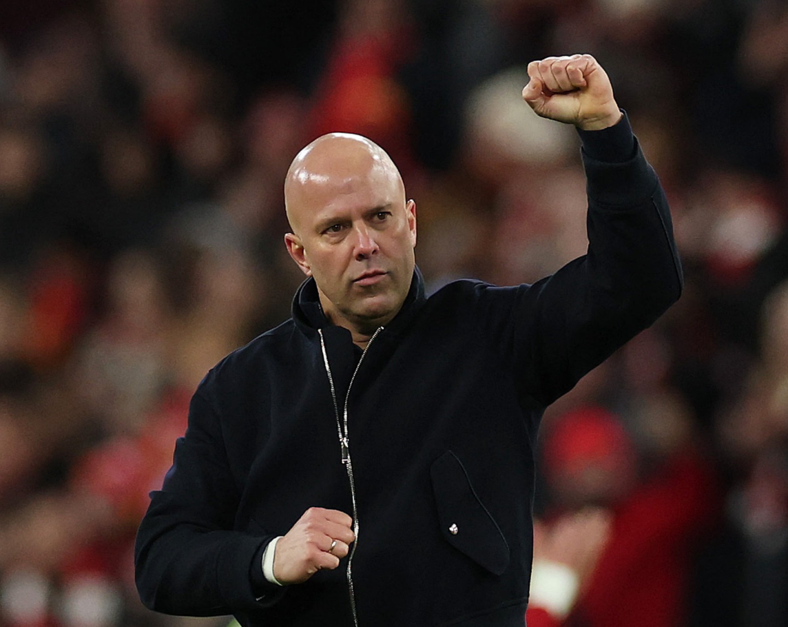 Coach Arne Slot celebrates after Liverpool's 3-0 victory over Brighton in round four of the FA Cup at Anfield, Liverpool, England on 14/2. Photo: Reuters